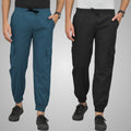 Pack Of 2 Mens Teal Blue And Black Airy Linen Summer Cool Cotton Comfort Joggers