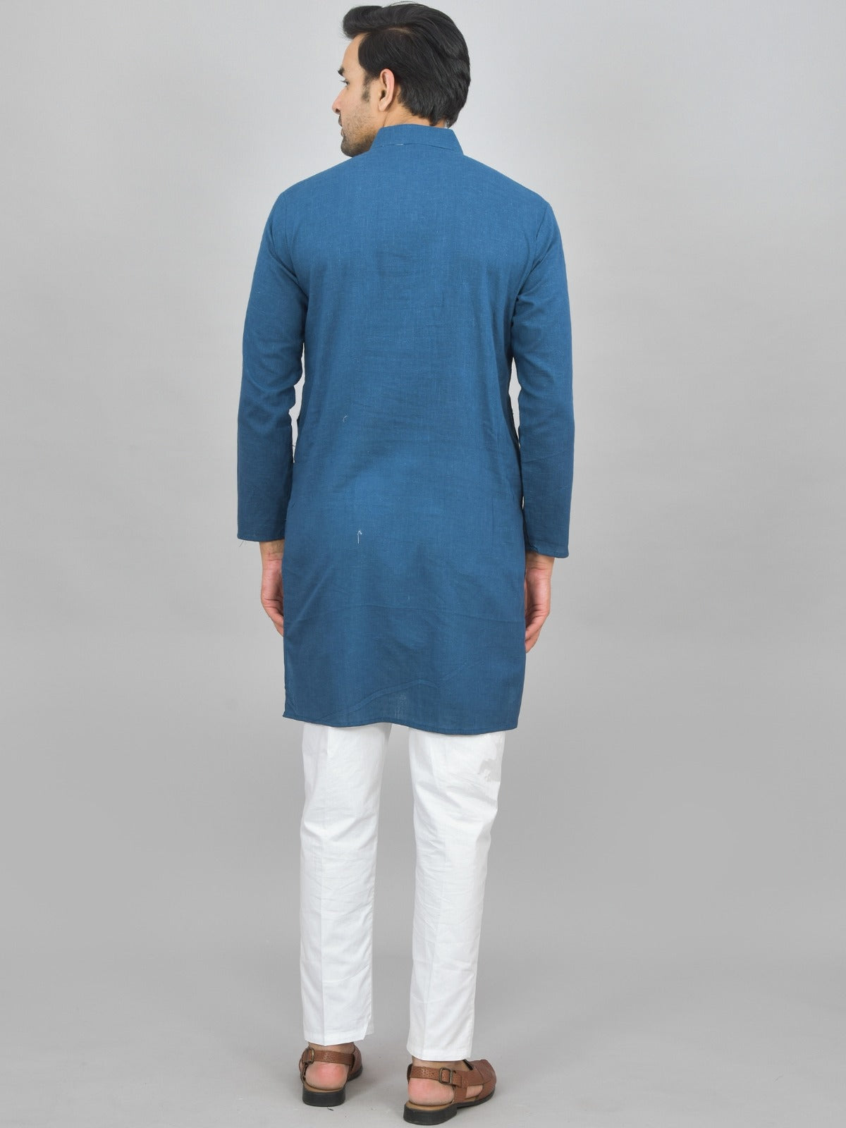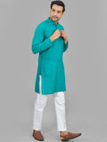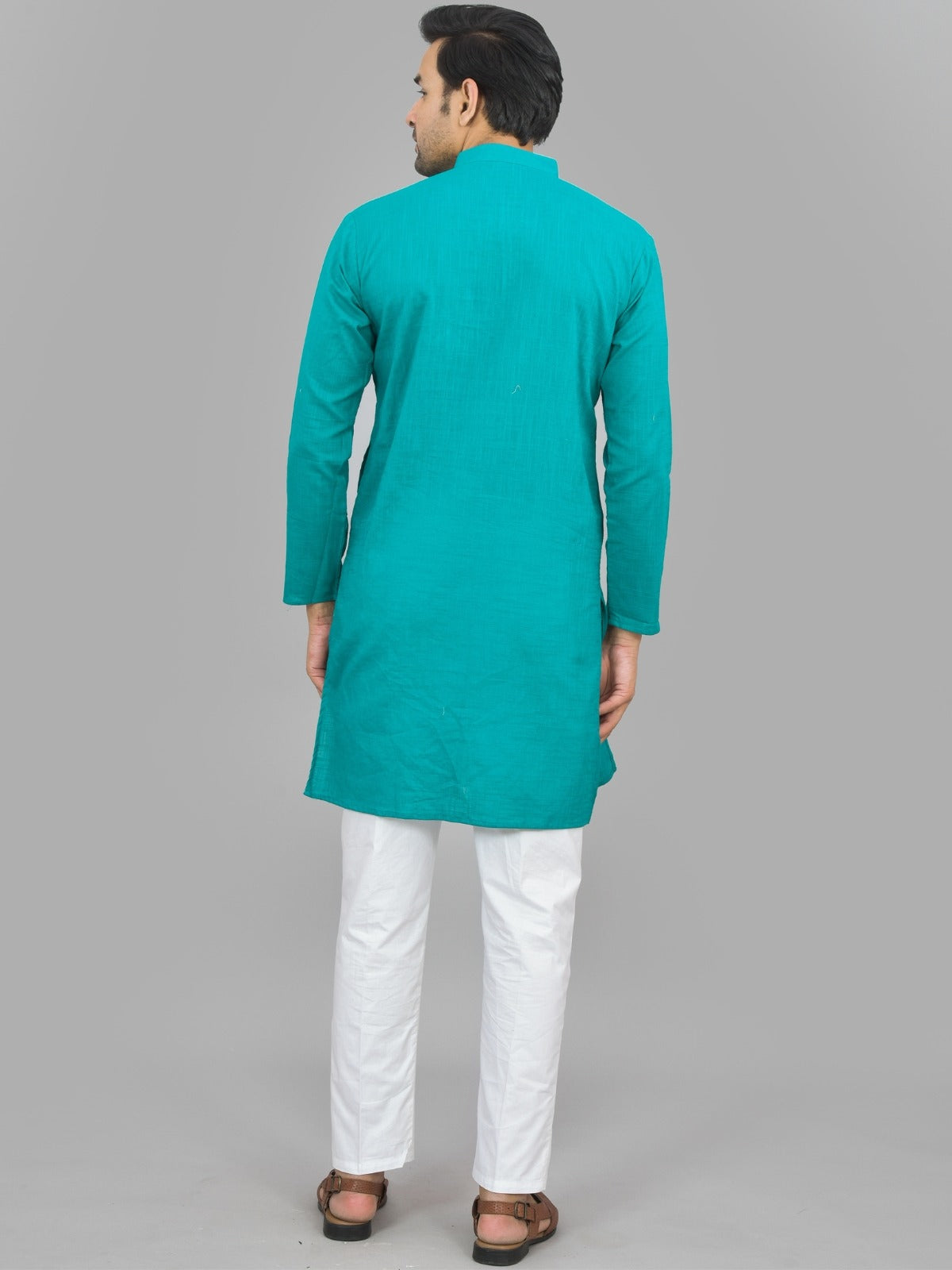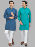 Mens Solid Teal Blue And Cyan Cotton Long Kurta Combo