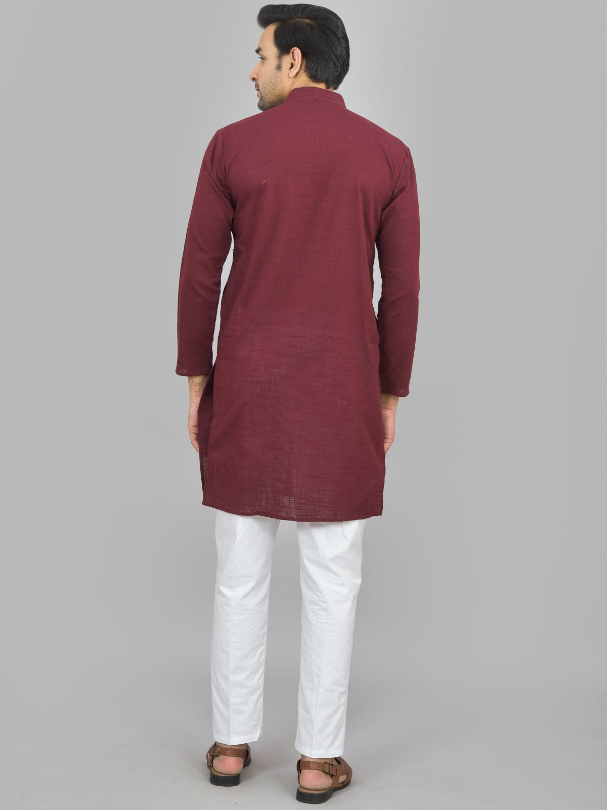 Mens Solid Teal Blue And Wine Cotton Long Kurta Combo