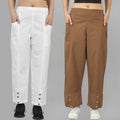 Combo Pack Of Womens White And Brown Side Pocket Straight Cargo Pants