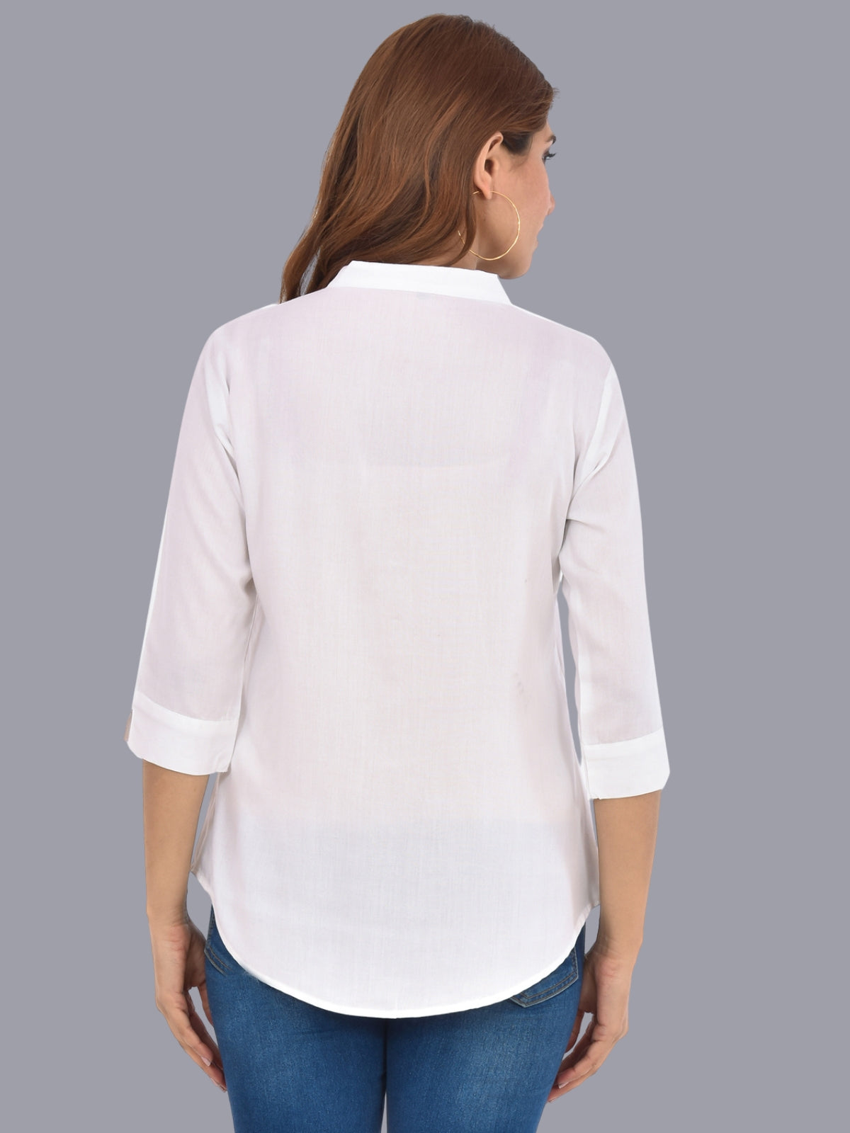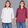 Pack Of 2 Womens Solid White and Wine Rayon Chinese Collar Shirts Combo