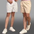Pack Of 2 White And Yellow Mens Printed Shorts Combo