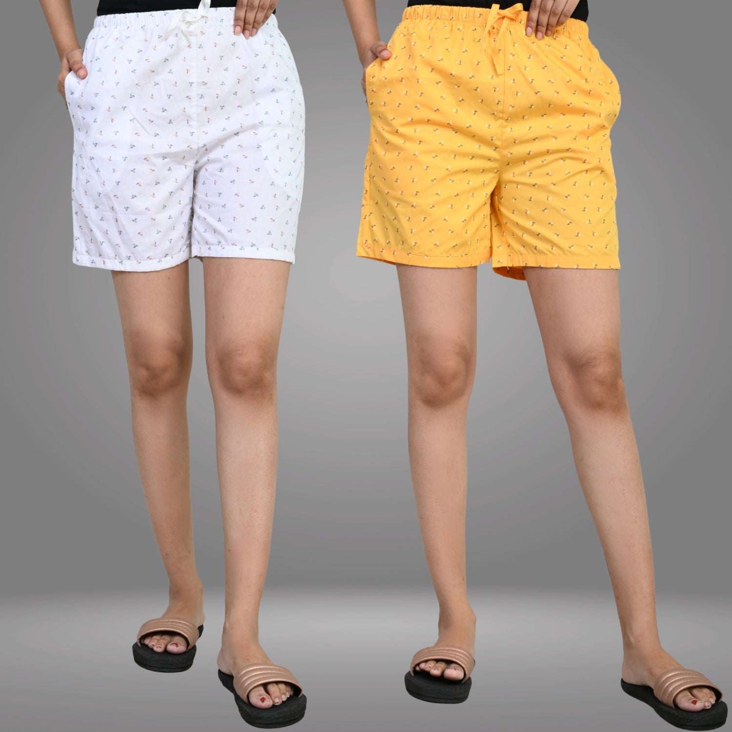 Pack Of 2 Womens White And Yellow Printed Short Combo