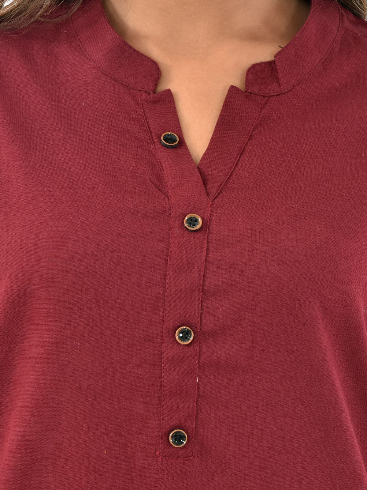 This Pack Of 2 Women's Solid Top Combo, is the ideal fusion of comfort and design, These will upgrade your wardrobe, made from a high-quality cotton that keeps you comfortable all day. Your outfit is made more sophisticated by the tasteful design. These adaptable tops is the perfect pick whether you're going to the office, on a casual trip, or to a weekend brunch. It radiates classic appeal and ups your fashion game, complete with a chinese/mandarin collar. The Women's Solid Top Combo can help you achieve modern elegance right away.