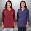Pack Of 2 Womens Regular Fit Wine And Navy Blue Three Fourth Sleeve Cotton Tops Combo