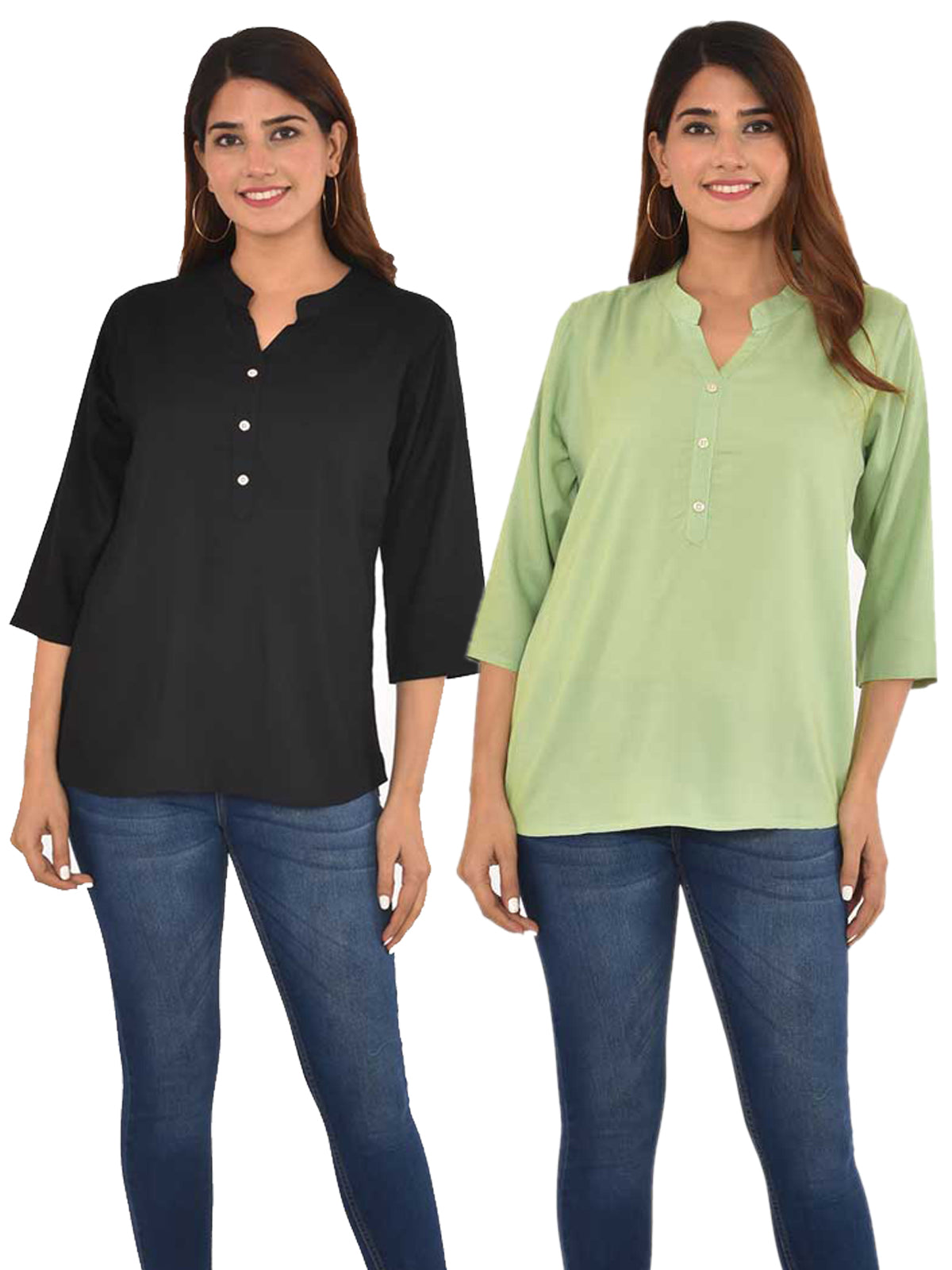 Pack Of 2 Women Black & Light Green Rayon Tops Combo