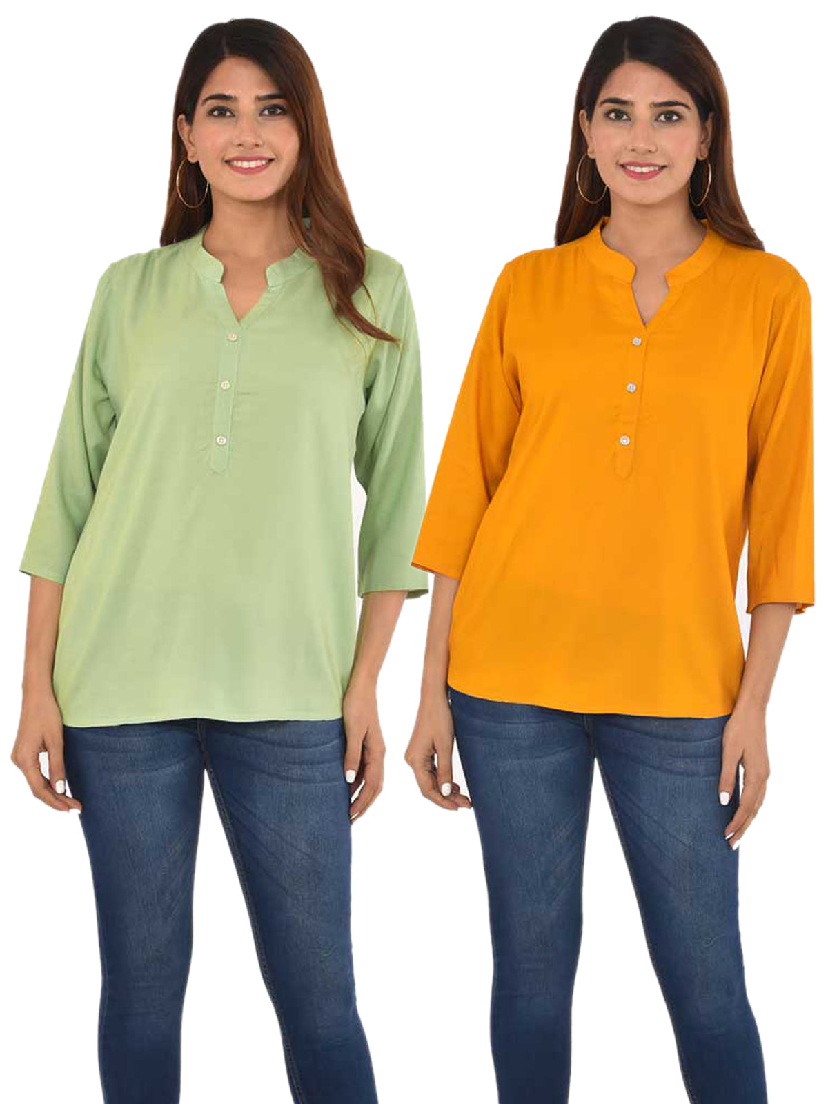 Pack Of 2 Women Light Green & Mustard Rayon Tops Combo