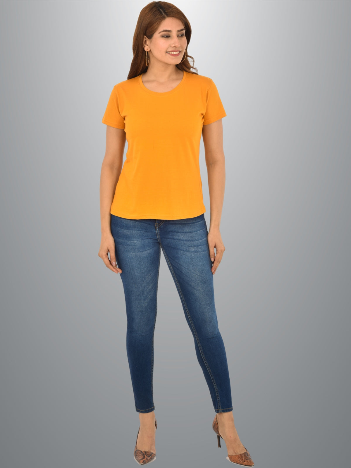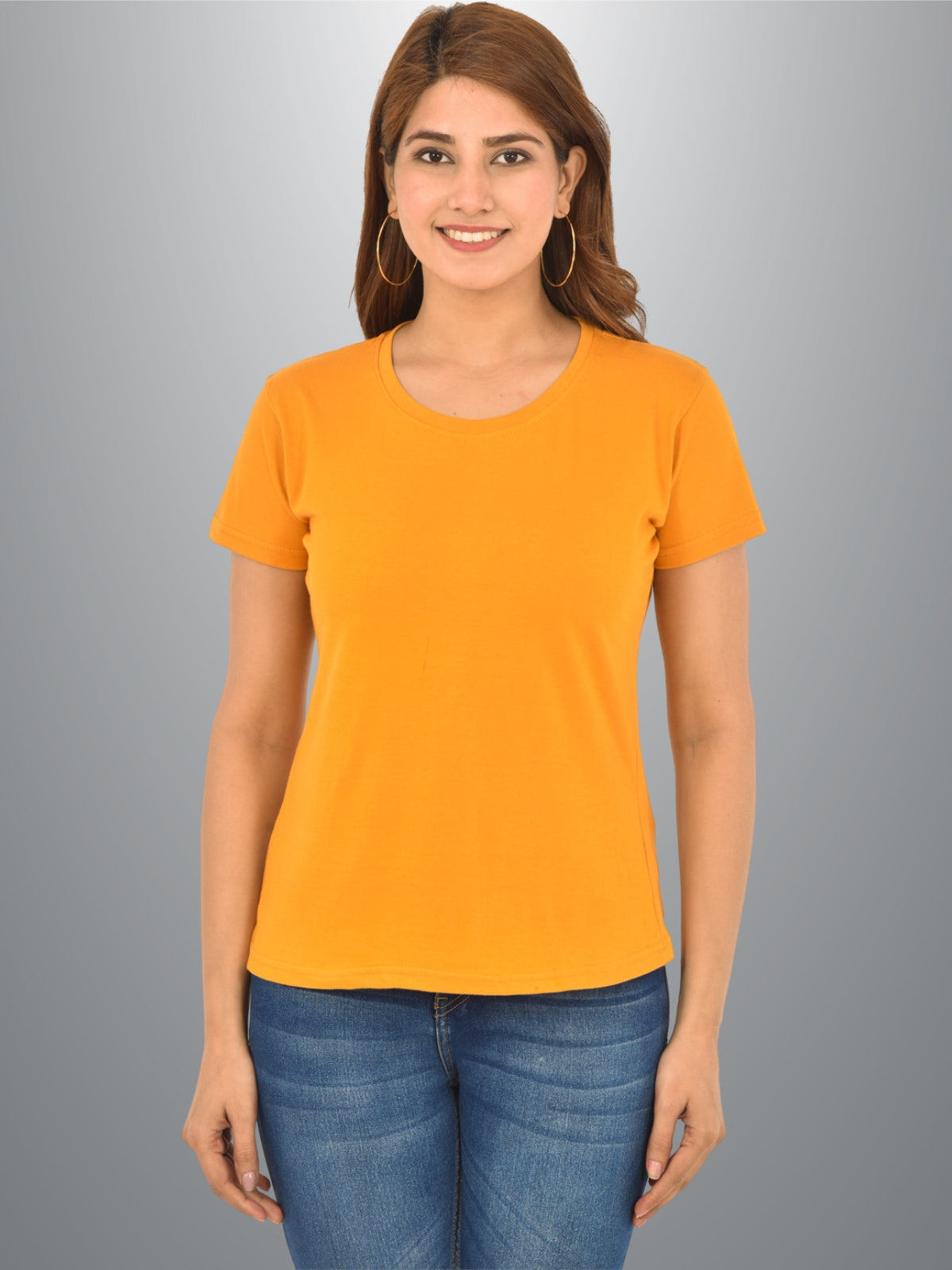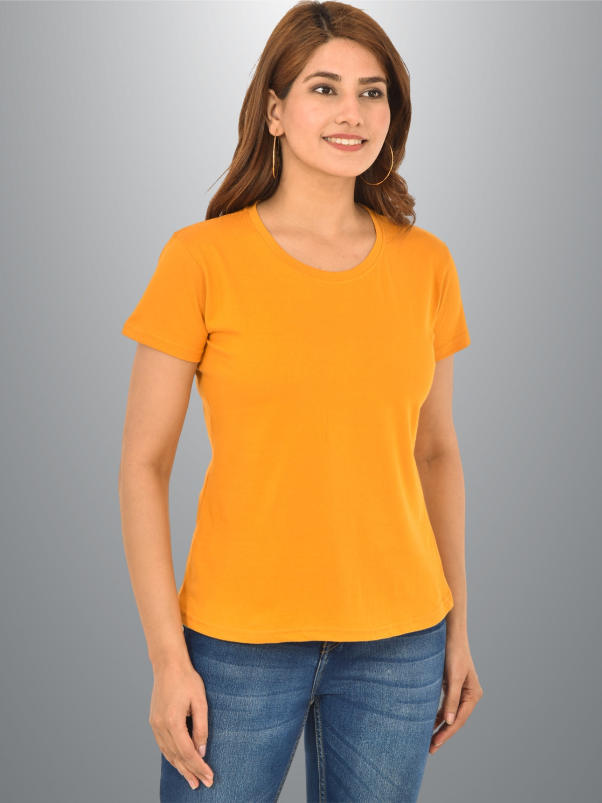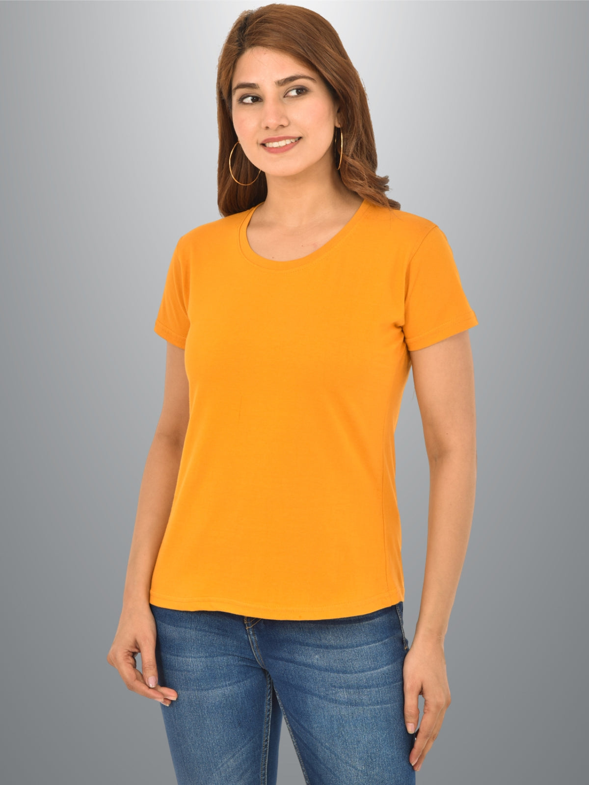 Womens Mustard Half Sleeves Cotton Plain T-shirt