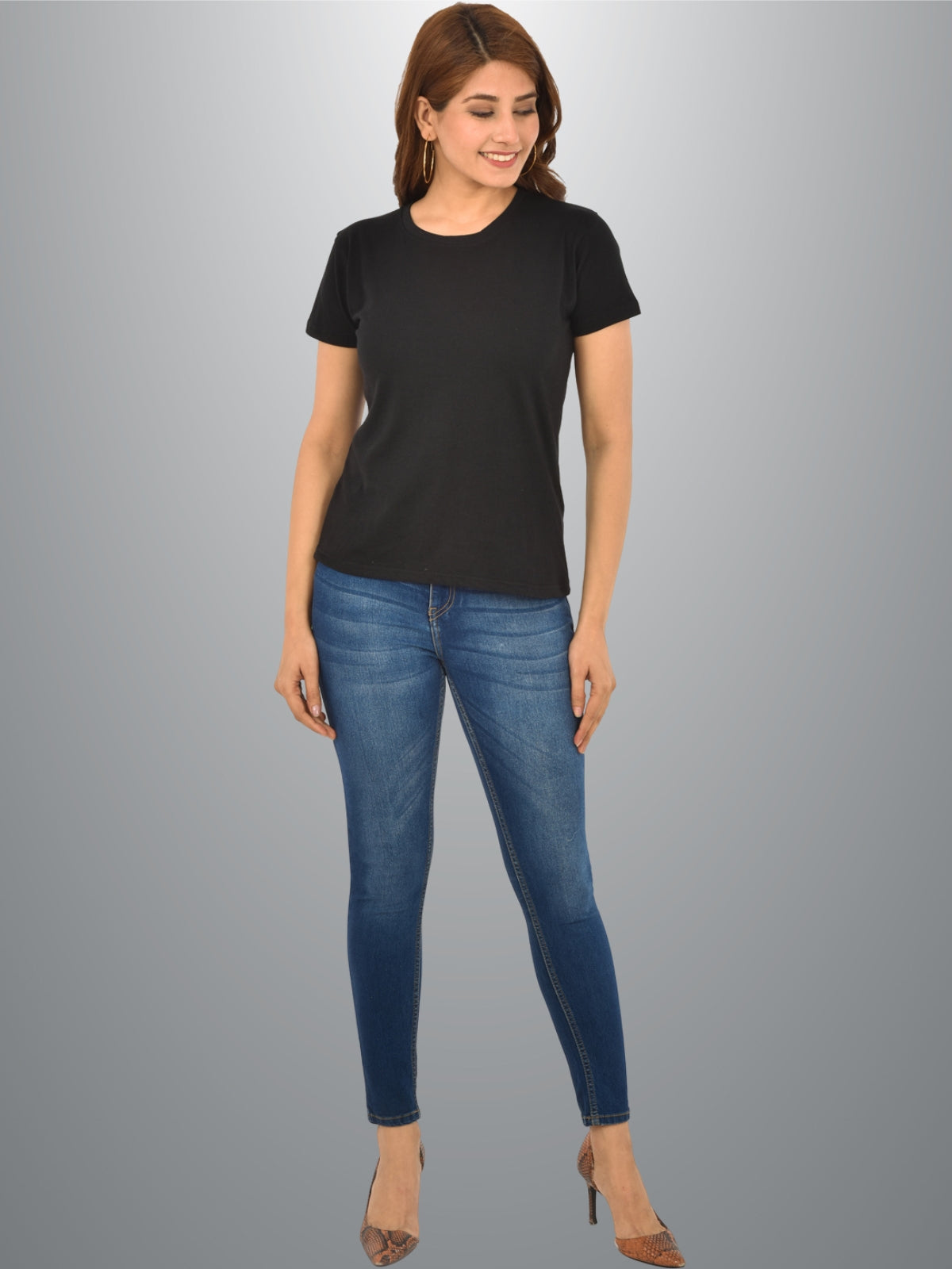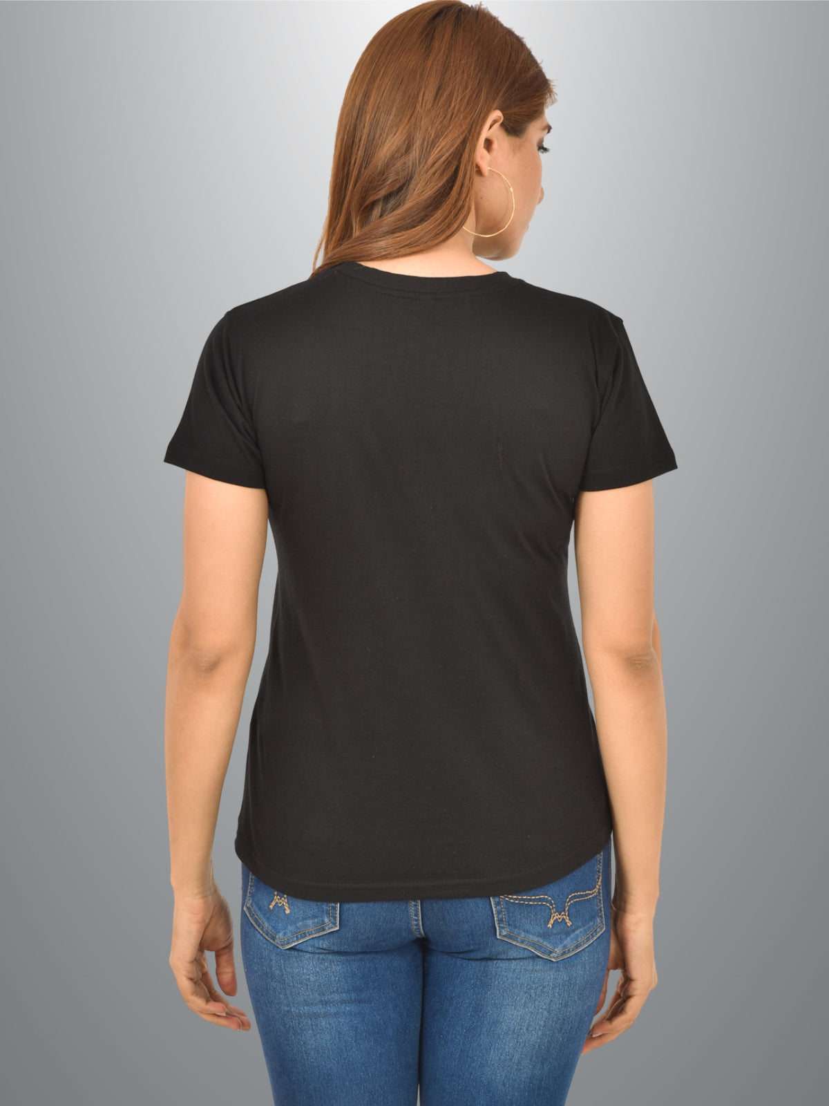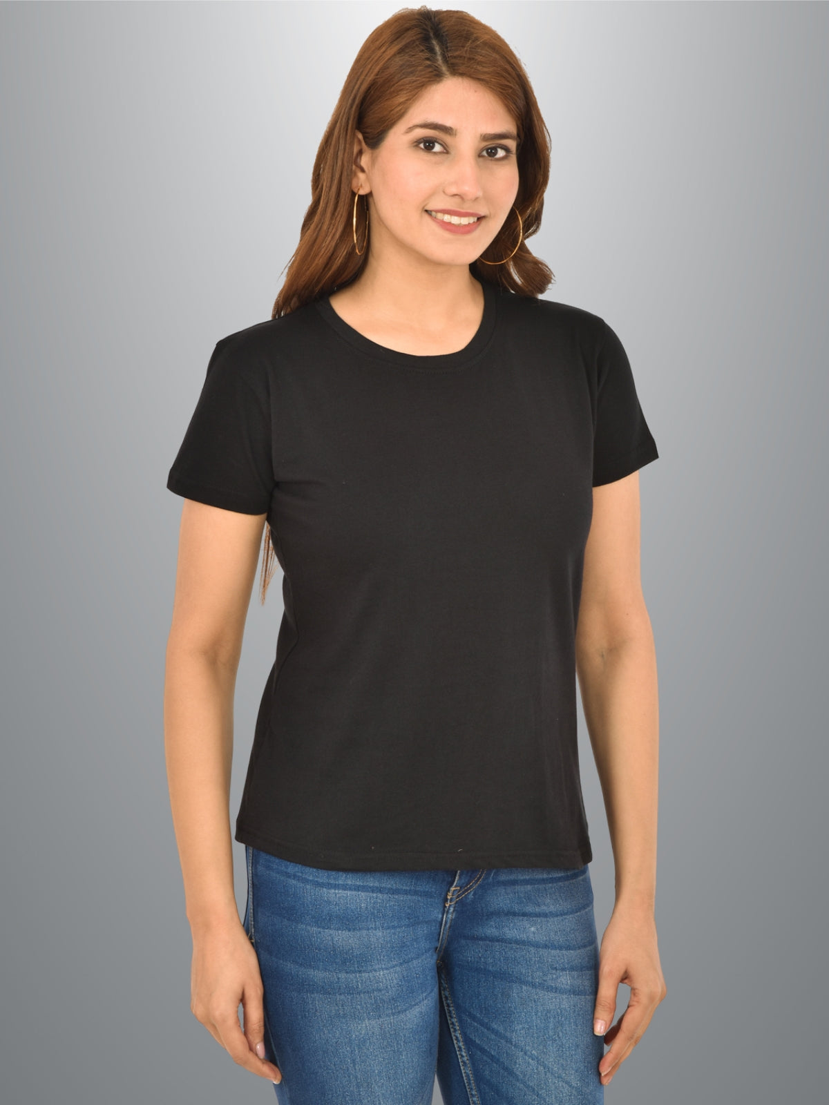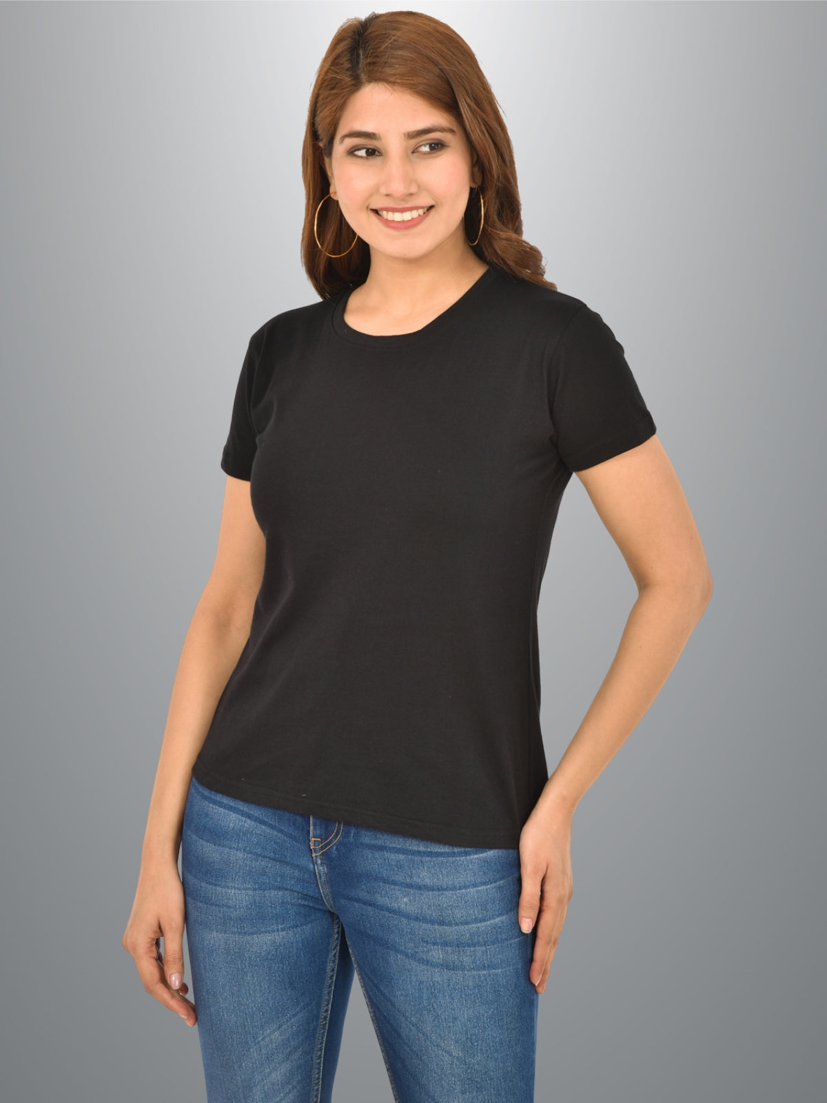 Womens Black Half Sleeves Cotton Plain T-shirt