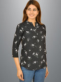 Womens Black Horse Printed Three Fourth Sleeve Crepe Top