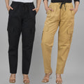 Pack Of 2 Womens Black And Khaki 5 Pocket Twill Straight Cargo Pants