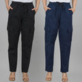 Pack Of 2 Womens Black And Navy Blue 5 Pocket Twill Straight Cargo Pants