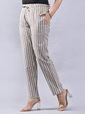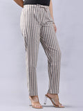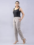 QuaClo Women Brown & Black Stripe Regular Fit Cotton Trouser