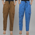 Pack Of 2 Womens Brown And Blue 5 Pocket Twill Straight Cargo Pants