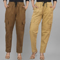 Pack Of 2 Womens Brown And Khaki 5 Pocket Twill Straight Cargo Pants