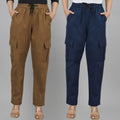 Pack Of 2 Womens Brown And Navy Blue 5 Pocket Twill Straight Cargo Pants