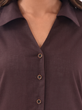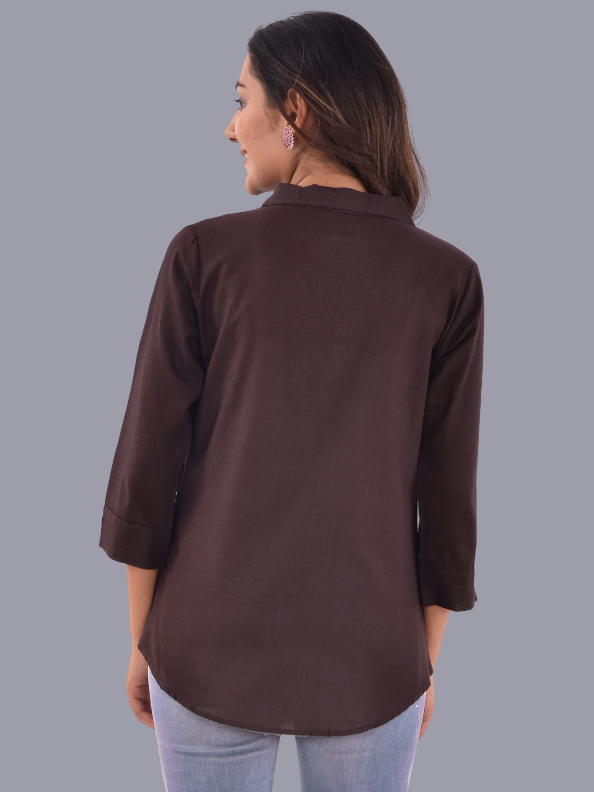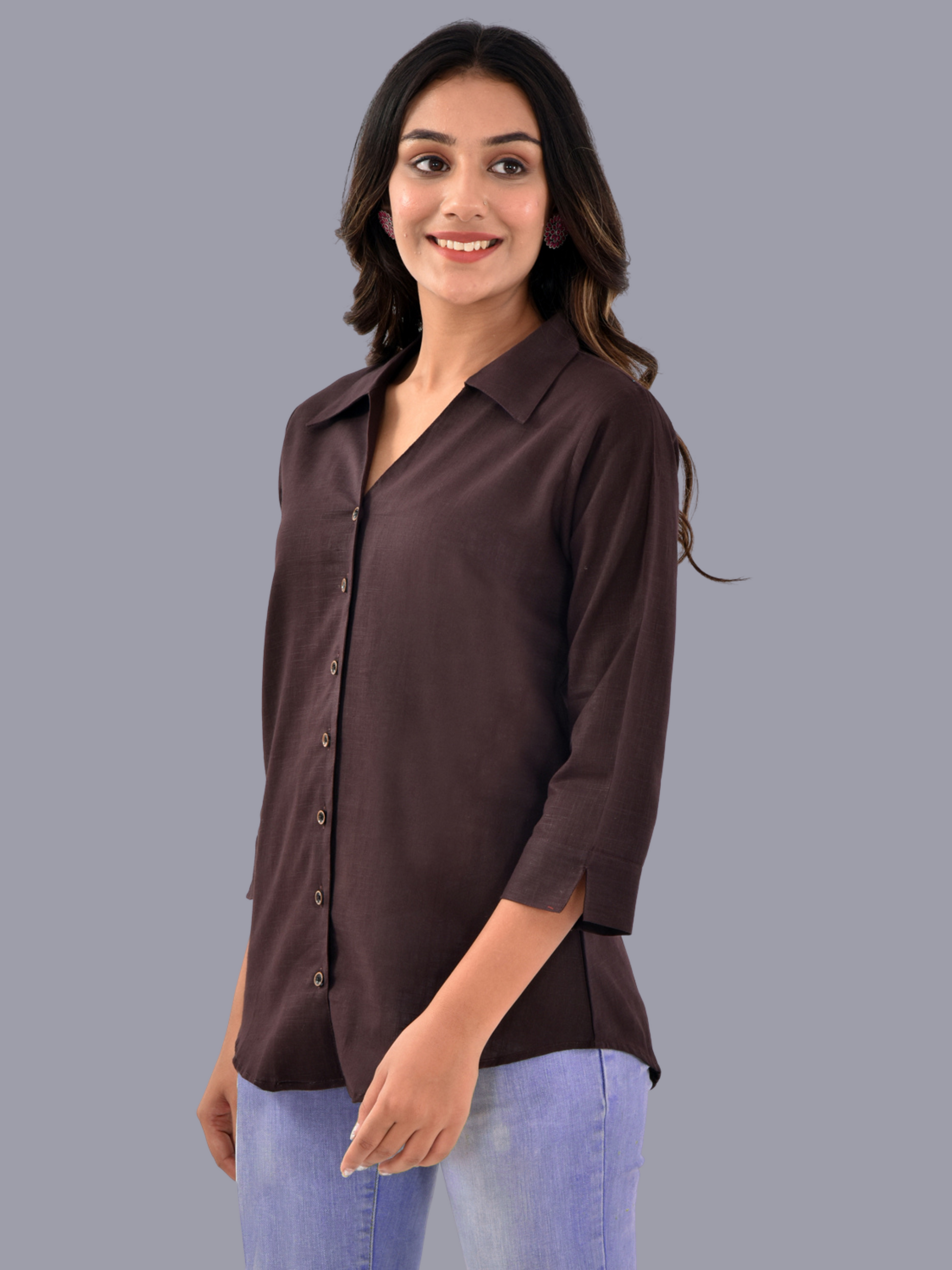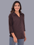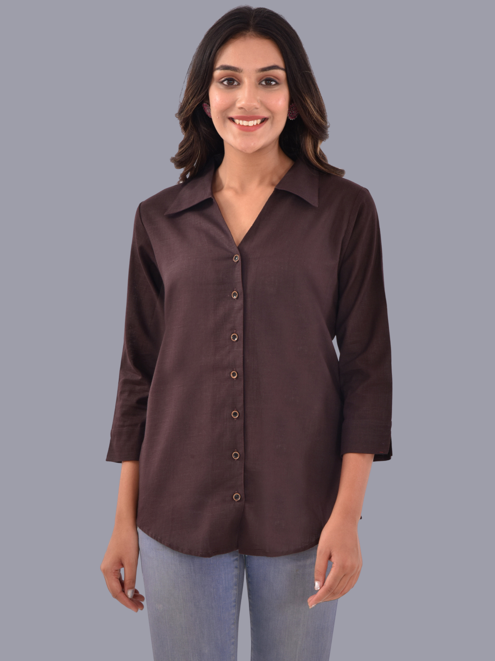 Womens Coffee 3/4 Sleeve Regular Fit Cotton Shirt