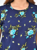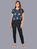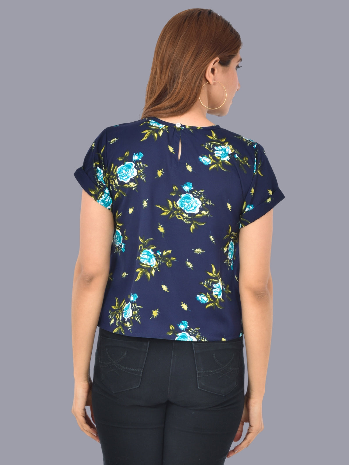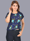 Womens Dark Blue Green Flower Printed Crepe Crop Top