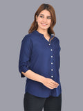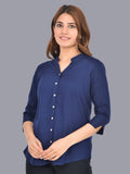 Womens Dark Blue Regular Fit Chinese Collar Rayon Shirt