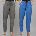 Pack Of 2 Womens Grey And Blue 5 Pocket Twill Straight Cargo Pants