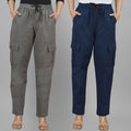 Pack Of 2 Womens Grey And Navy Blue 5 Pocket Twill Straight Cargo Pants