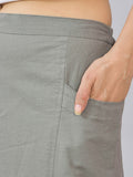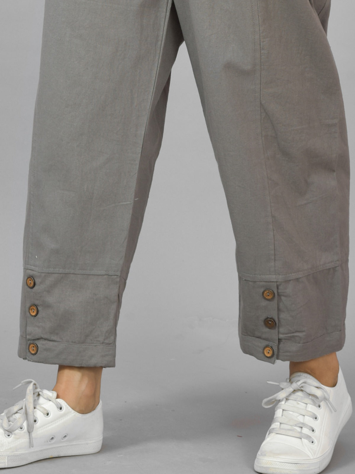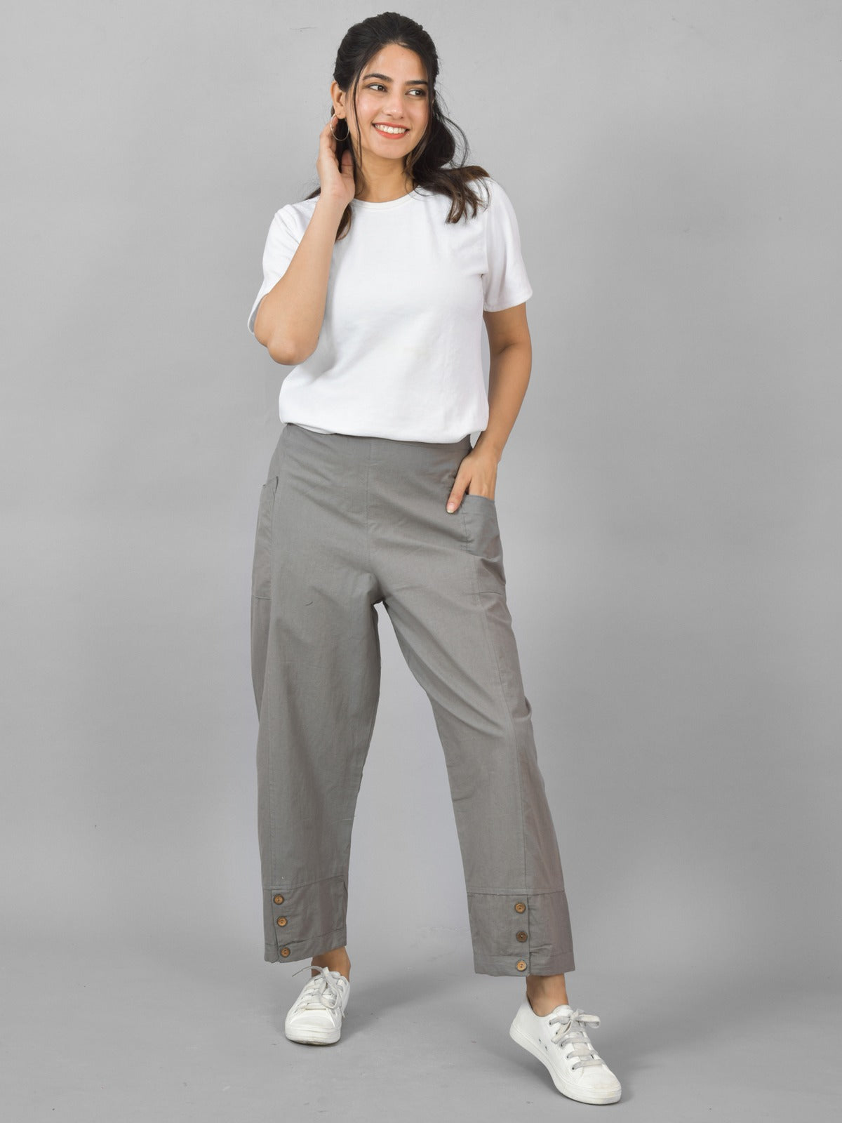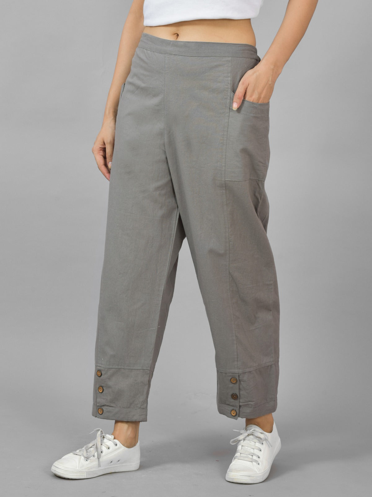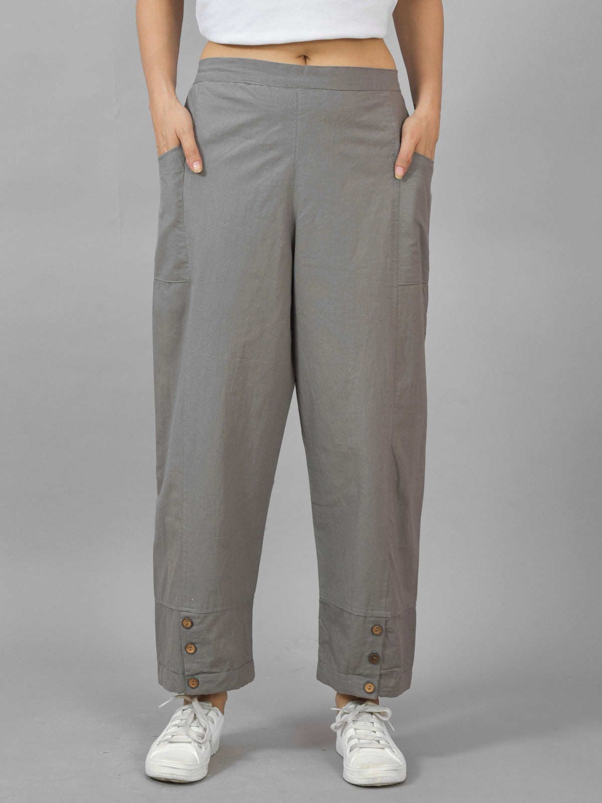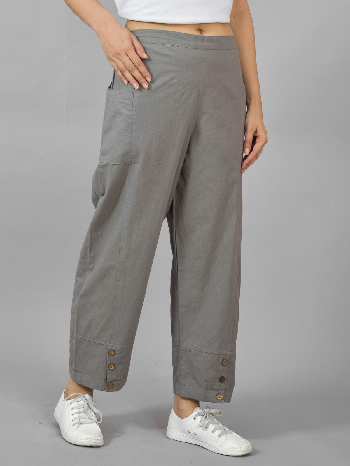 Womens Grey Side Pocket Pure Cotton Straight Cargo Pant