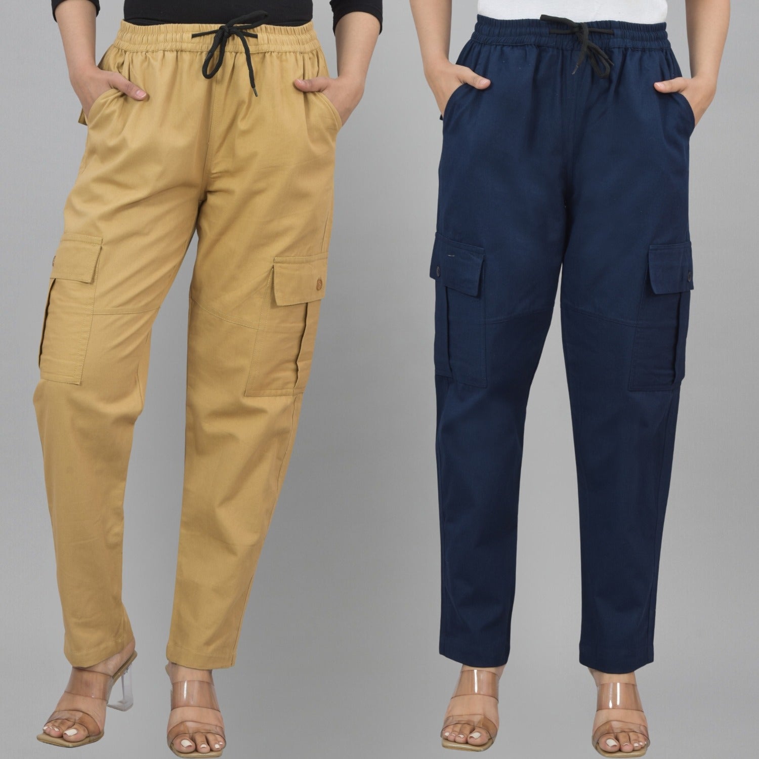 Pack Of 2 Womens Khaki And Navy Blue 5 Pocket Twill Straight Cargo Pants