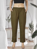 Mehendi Green Fully Elastic Airy Linen Cotton Pants