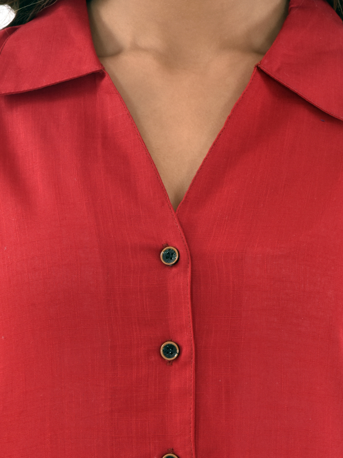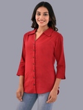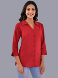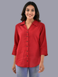 Womens Maroon 3/4 Sleeve Regular Fit Cotton Shirt
