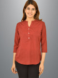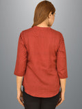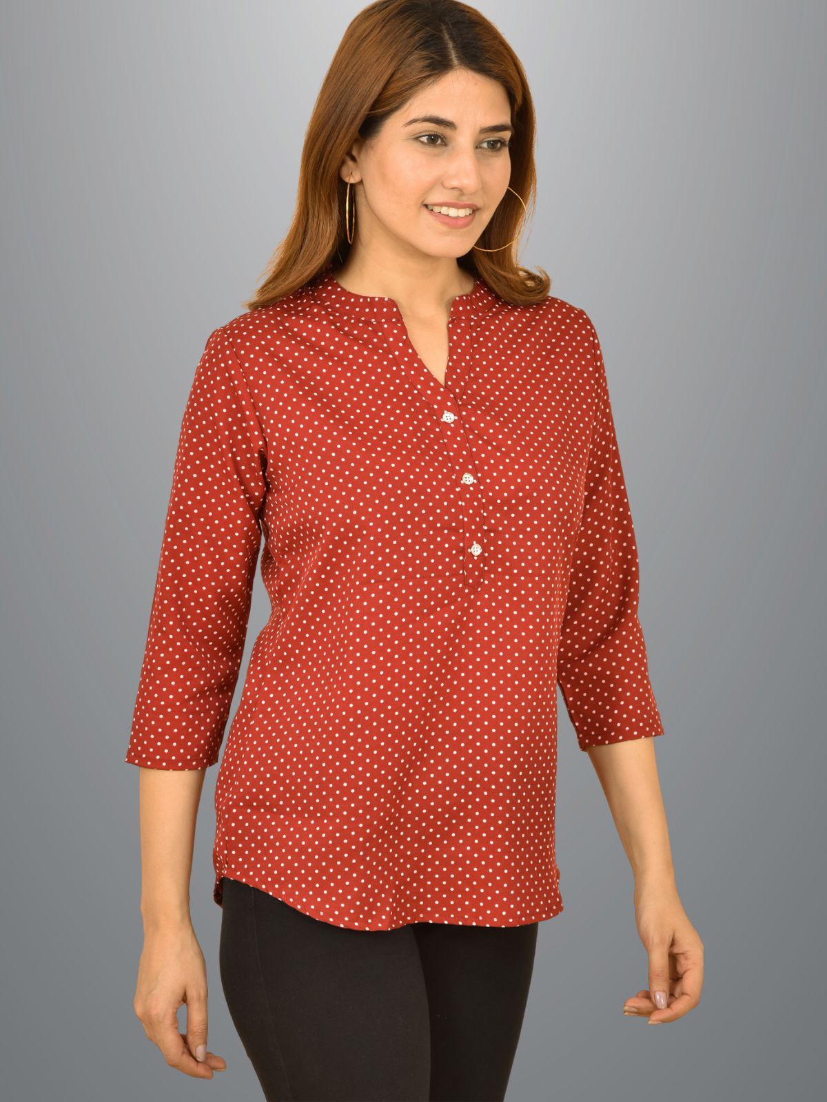 Womens Maroon Dot Printed Three Fourth Sleeve Crepe Top