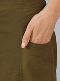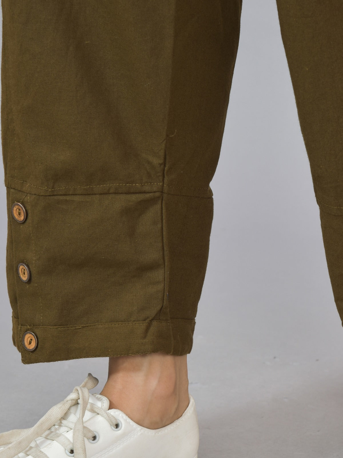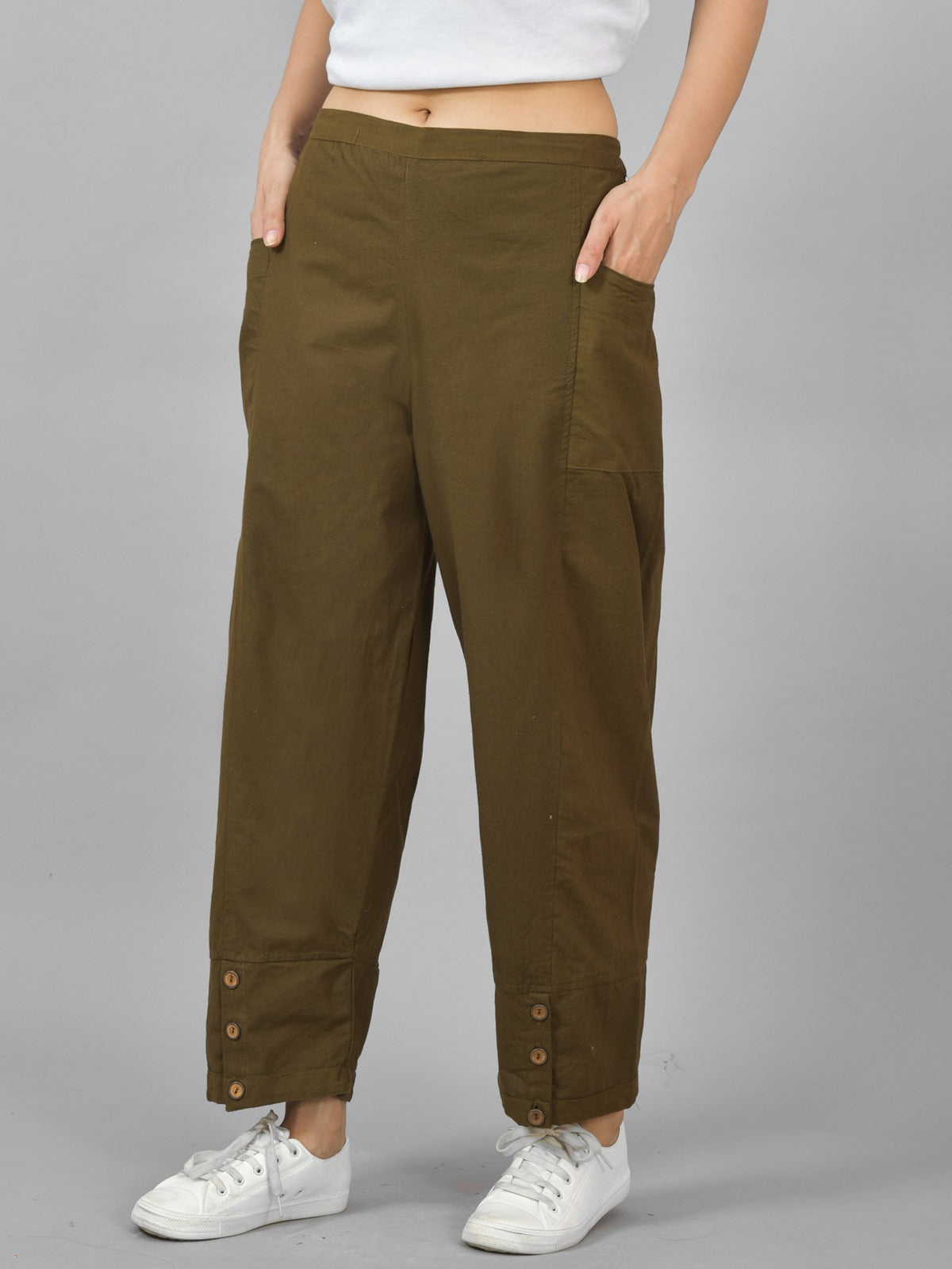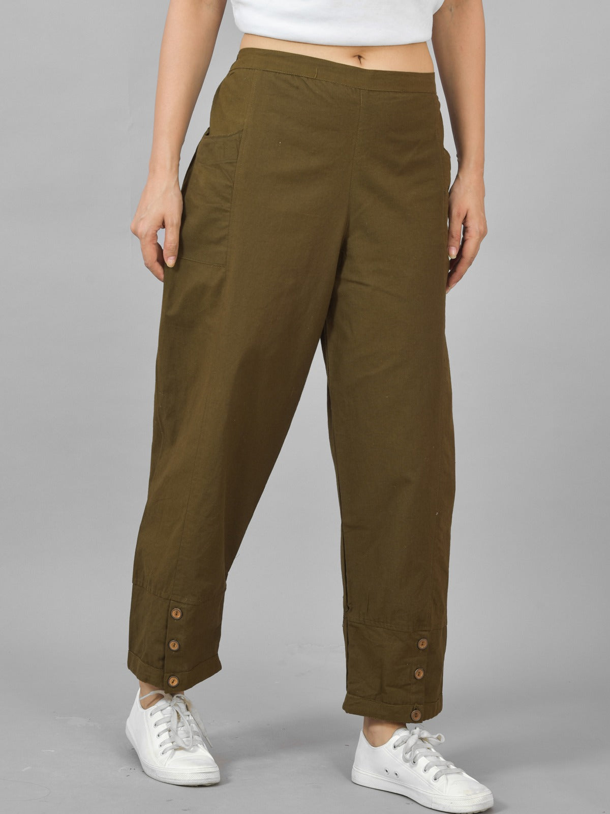Womens Mehndi Green Side Pocket Pure Cotton Straight Cargo Pant