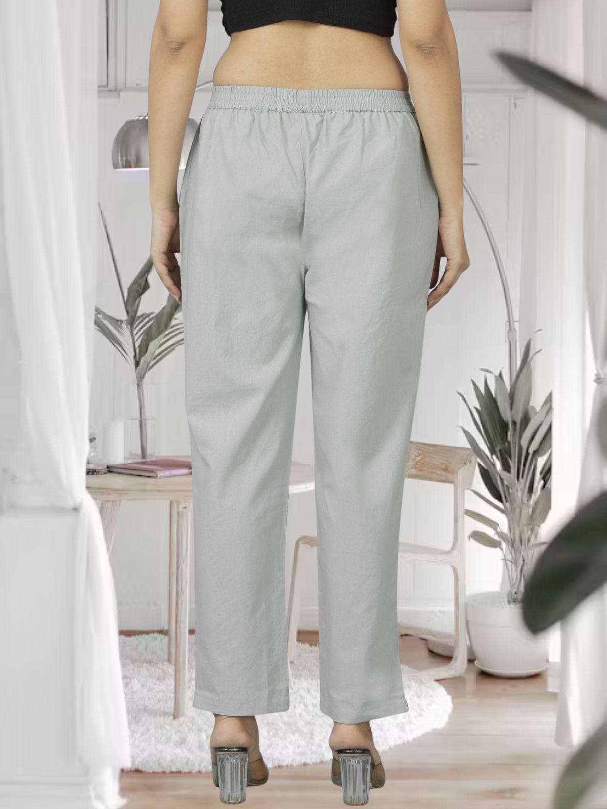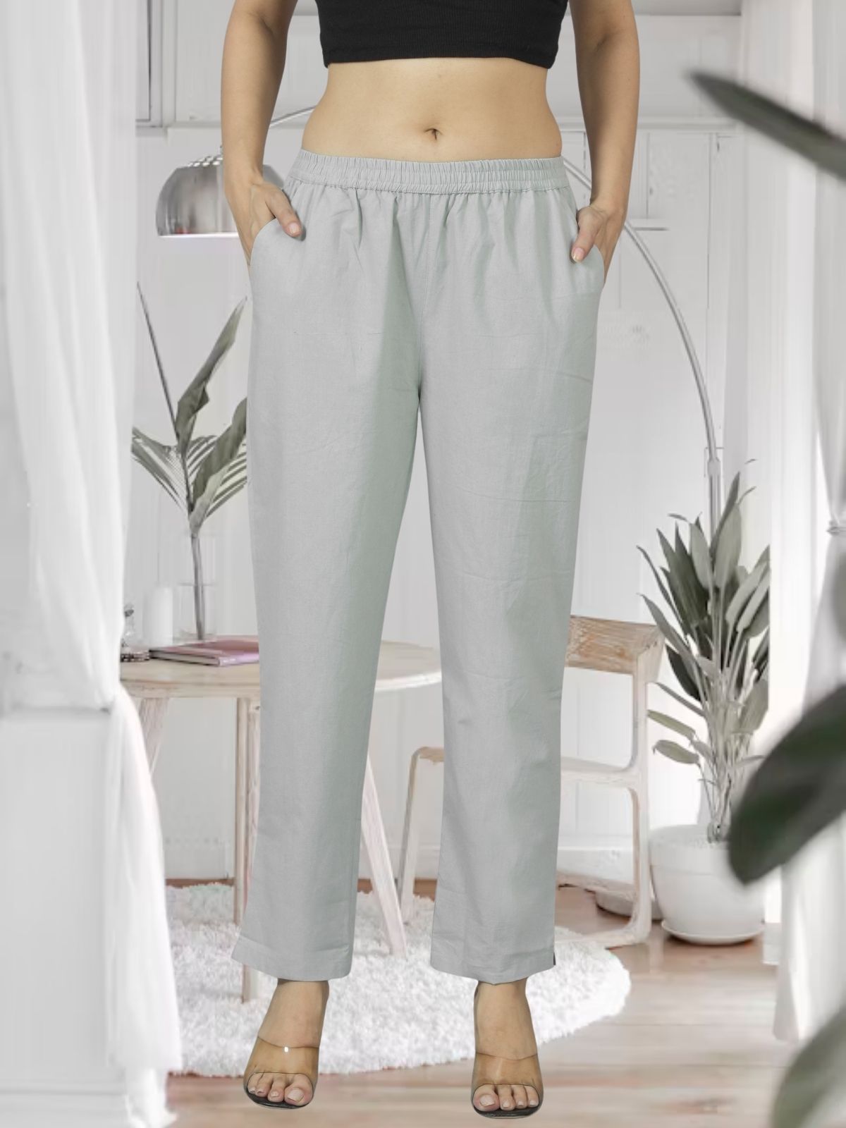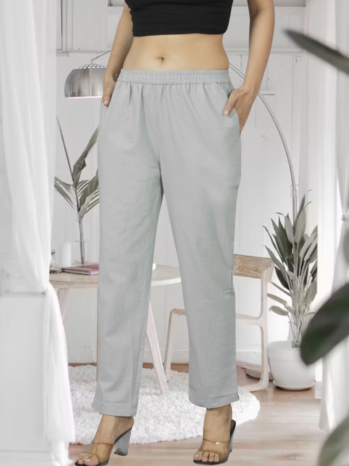 Melange Grey Fully Elastic Airy Linen Cotton Pants