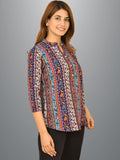 Womens Multicolour Designs Printed Three Fourth Sleeve Crepe Top
