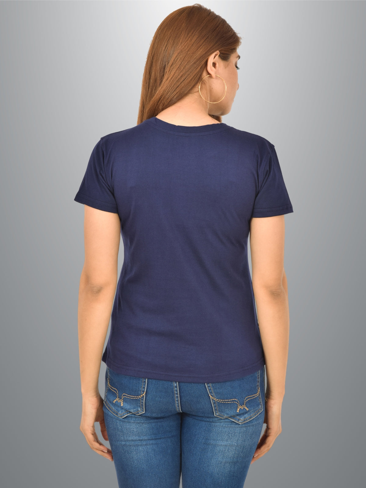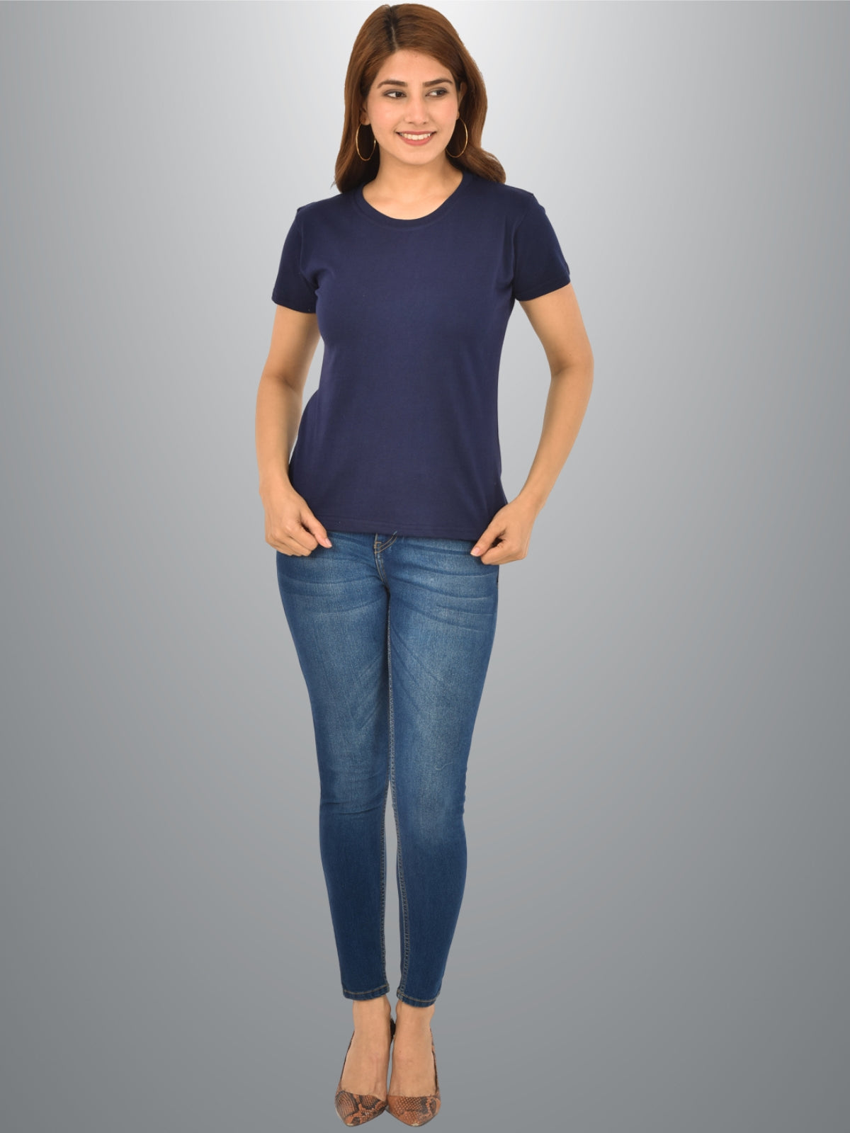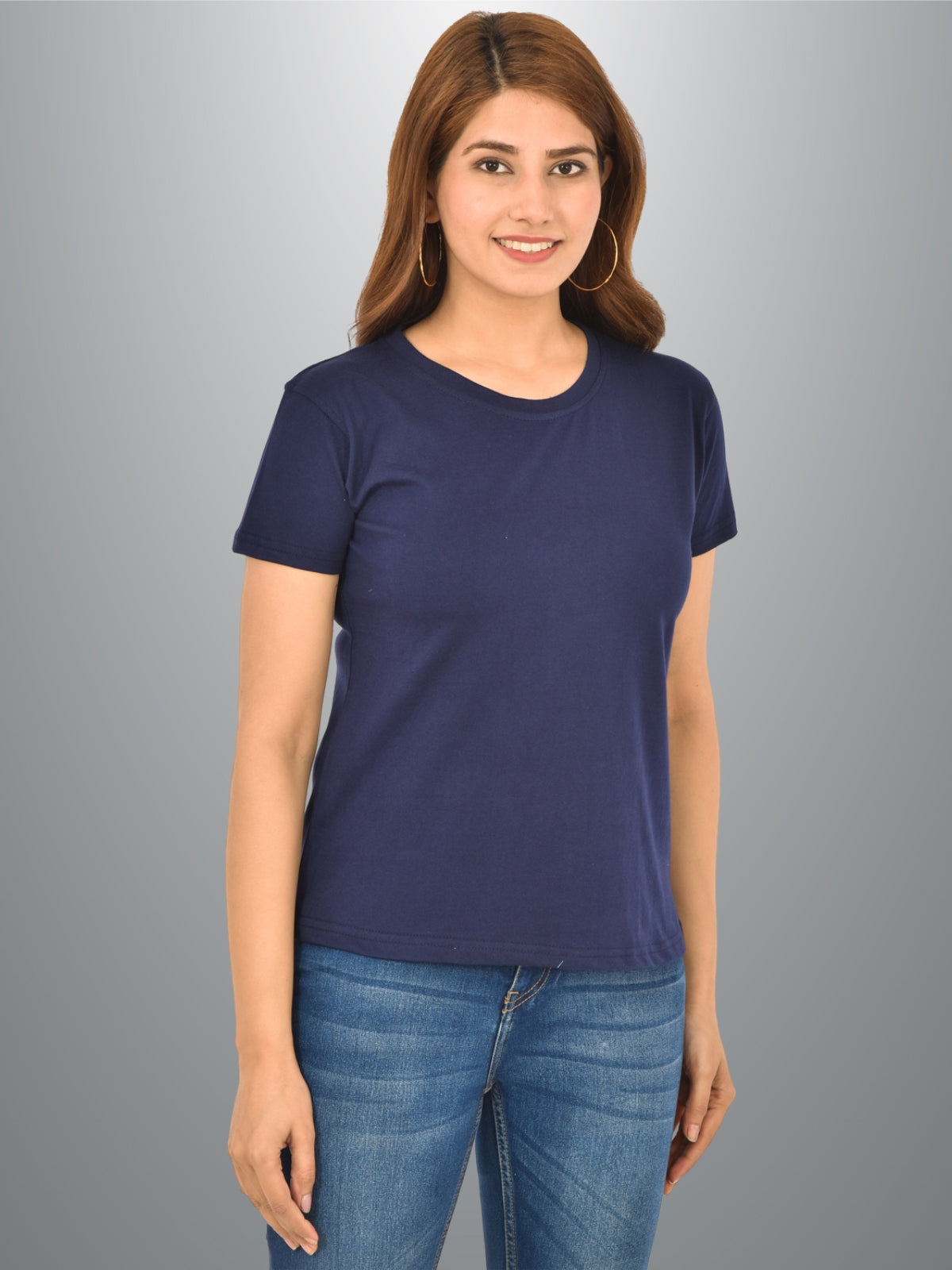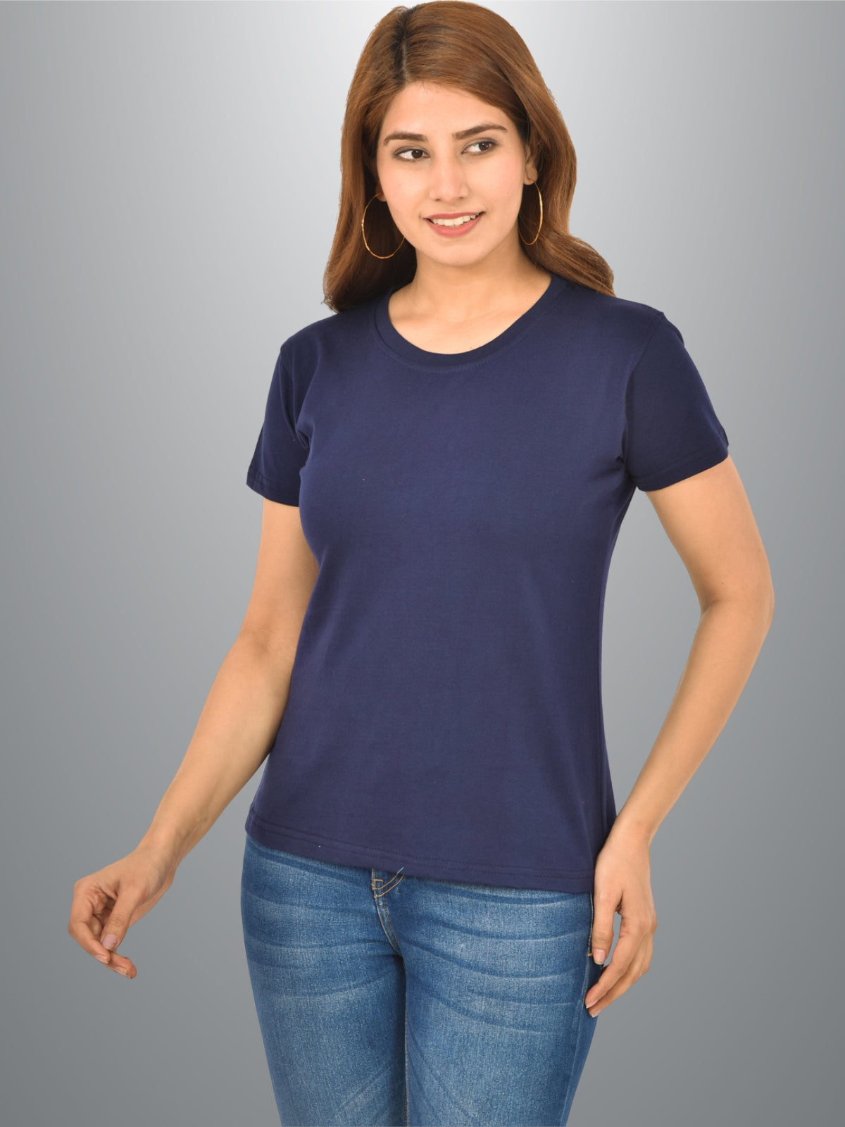 Womens Navy Blue Half Sleeves Cotton Plain T-shirt