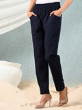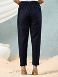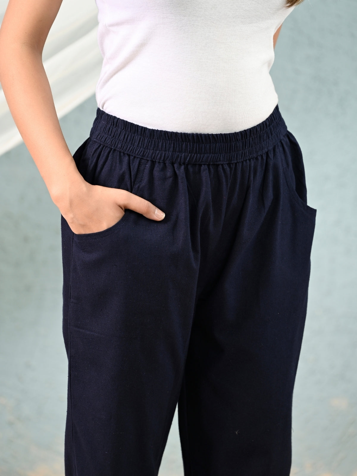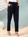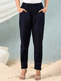 Women's Navy Blue Regular Fit Elastic Cotton Trouser