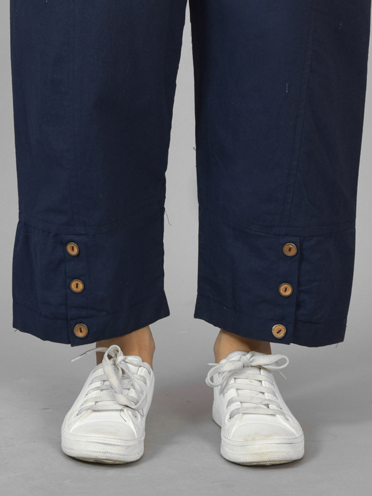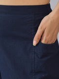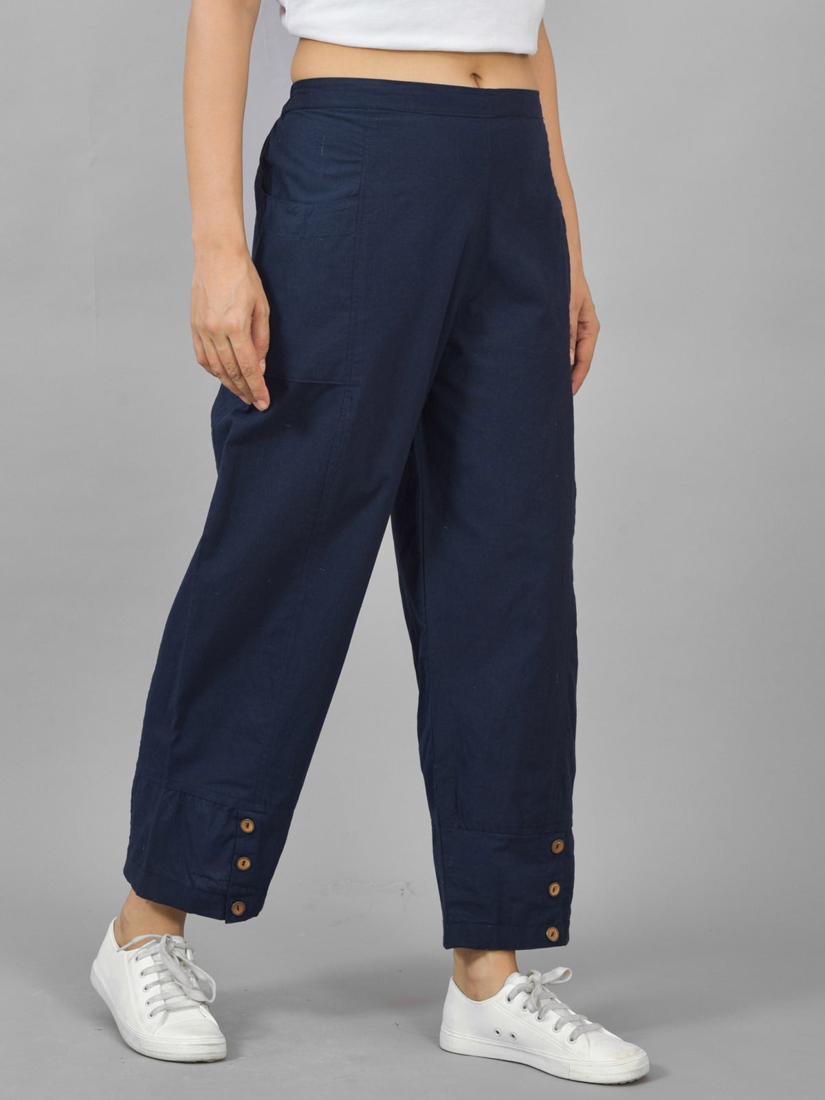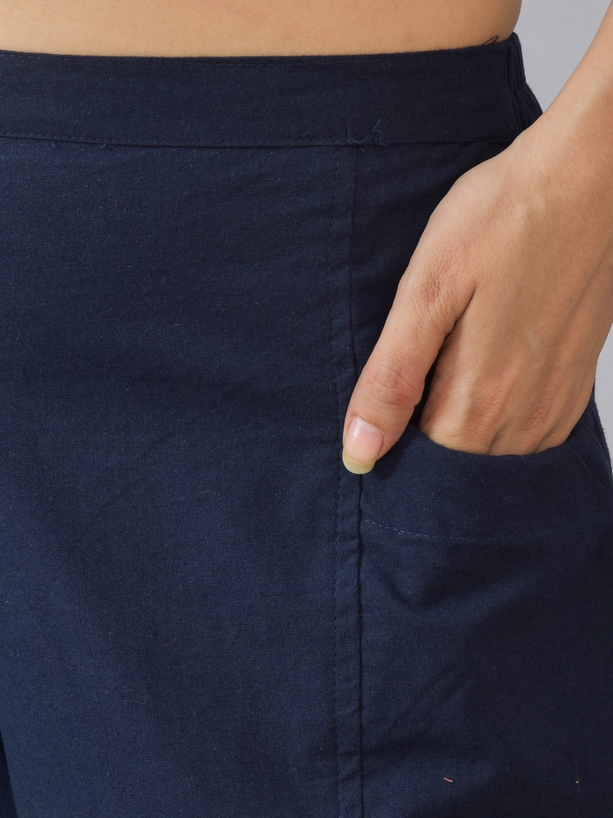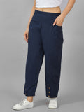 Womens Navy Blue Side Pocket Pure Cotton Straight Cargo Pant