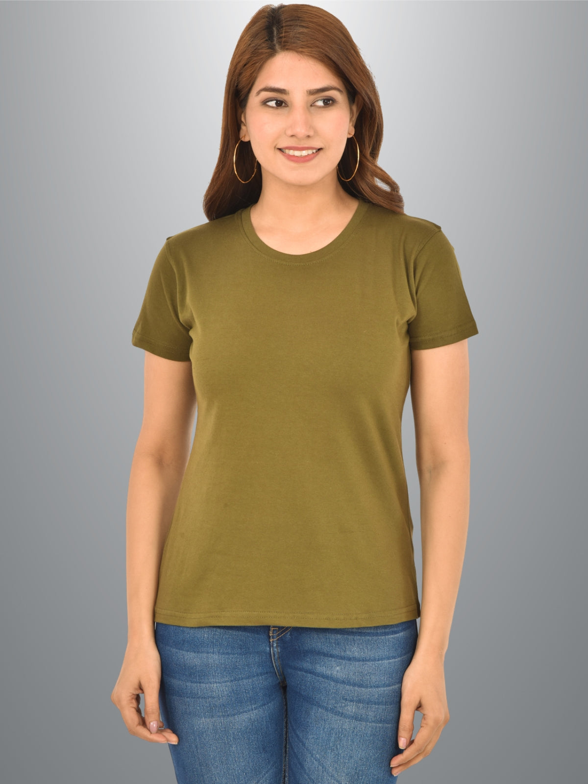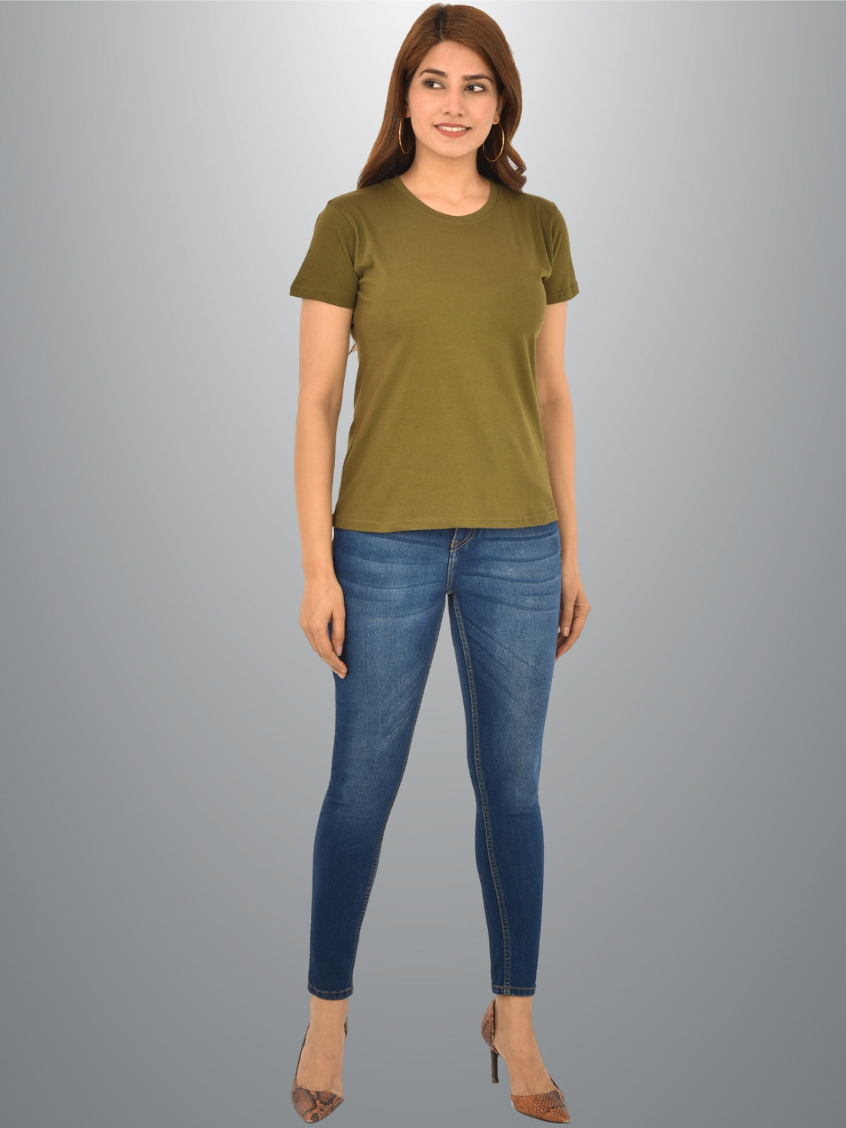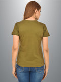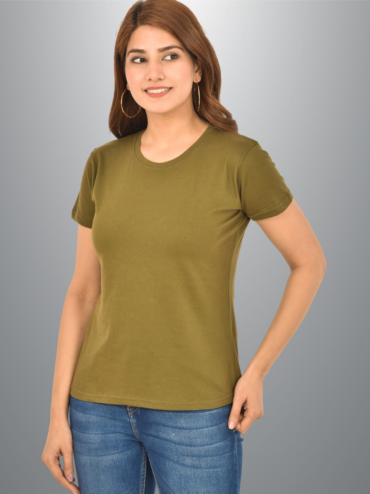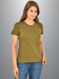 Womens Olive Green Half Sleeves Cotton Plain T-shirt
