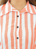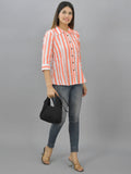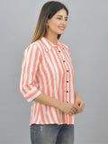 Womens Orange Regular Fit Striped Cotton Spread Collar Casual Shirt