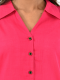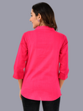 Womens Pink 3/4 Sleeve Regular Fit Cotton Shirt