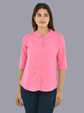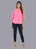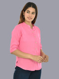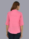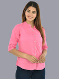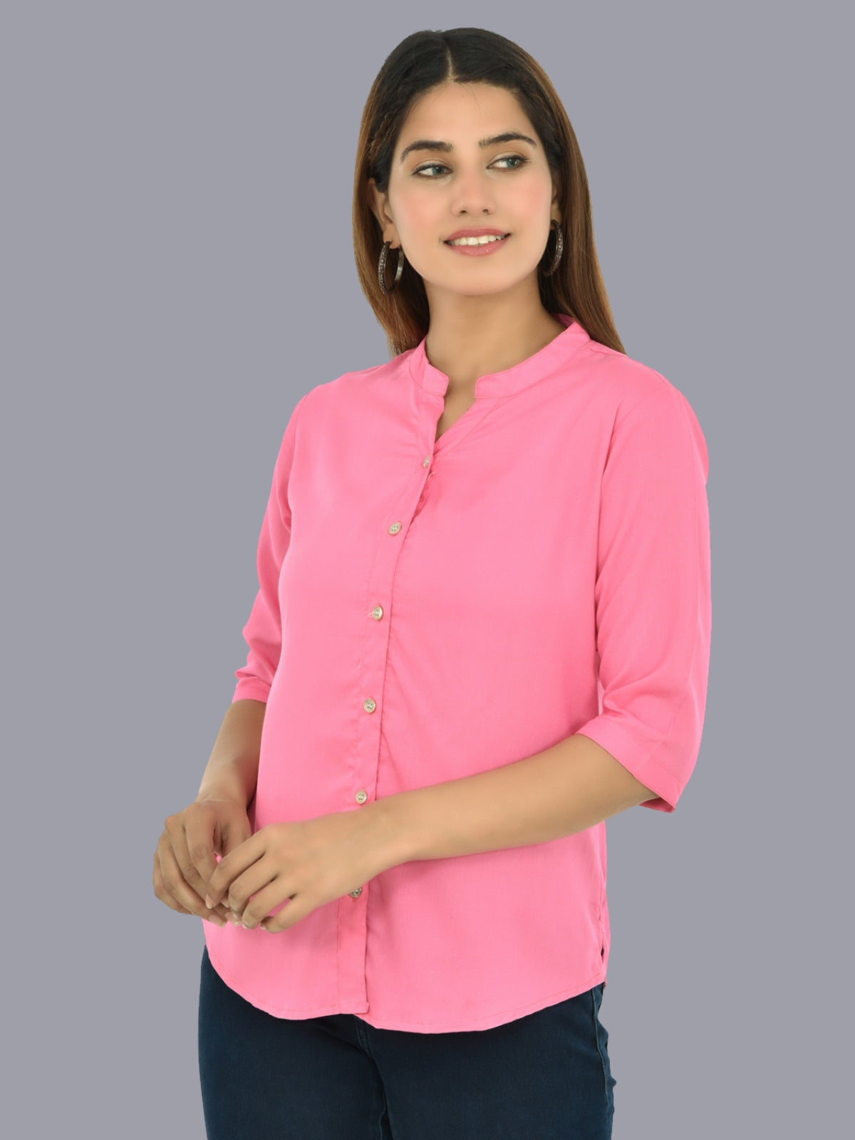 Womens Pink Regular Fit Chinese Collar Rayon Shirt