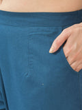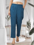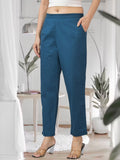 Teal Blue Half Elastic Airy Linen Cotton Pants