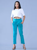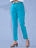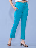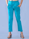 Women Regular Fit Light Blue Cotton Slub Trouser