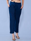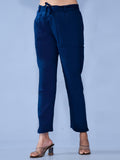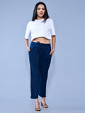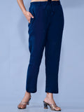 Women Regular Fit Teal Blue Cotton Slub Trouser
