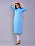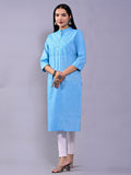 Women's Solid Woven South Cotton Straight Kurti, with its gorgeous stitch pattern on the front, it has mandarin/chinese neck style with show buttons, it is the perfect way to update your collection of ethnic clothing. This kurti is made from fabric of the highest South Cotton grade and is ideal for any occasion. It is a great option for both informal and formal gatherings because to the straight silhouette and comfortable fit.