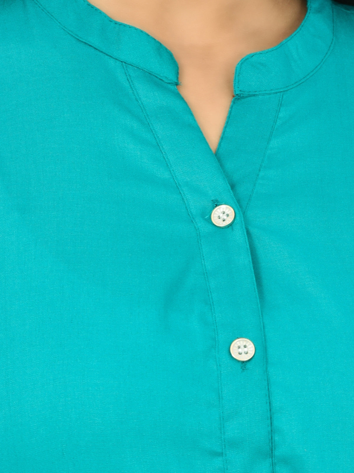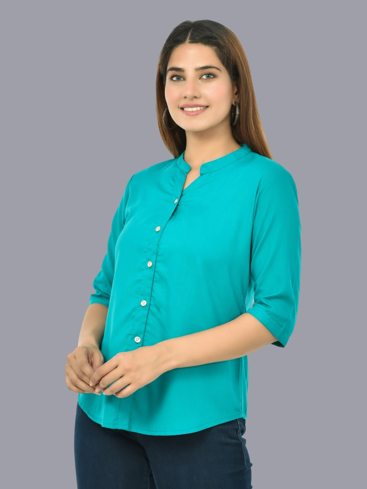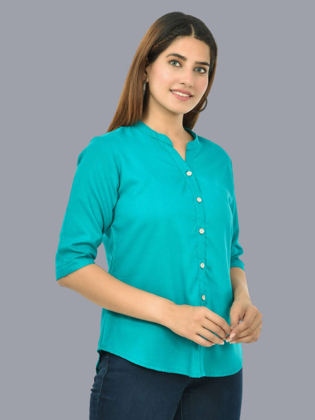 Womens Sky Blue Regular Fit Chinese Collar Rayon Shirt