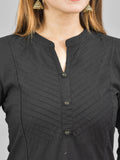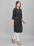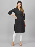 Womens Solid Black Three Fourth Sleeve Cotton Straight Kurti