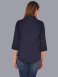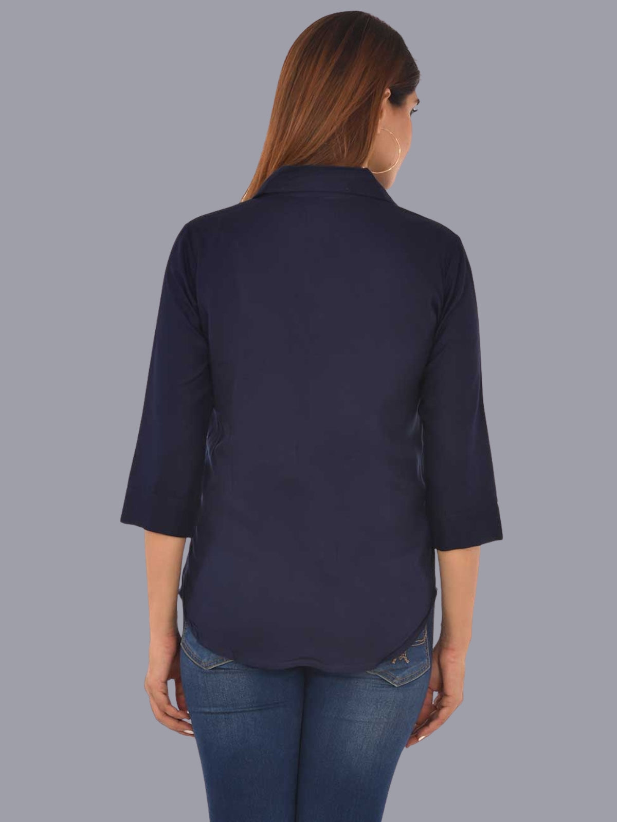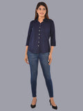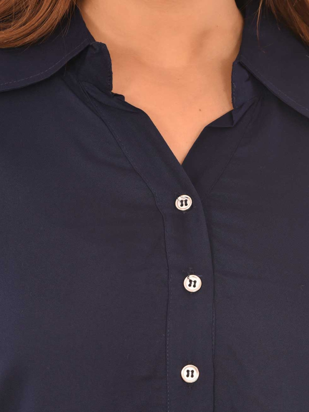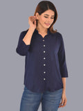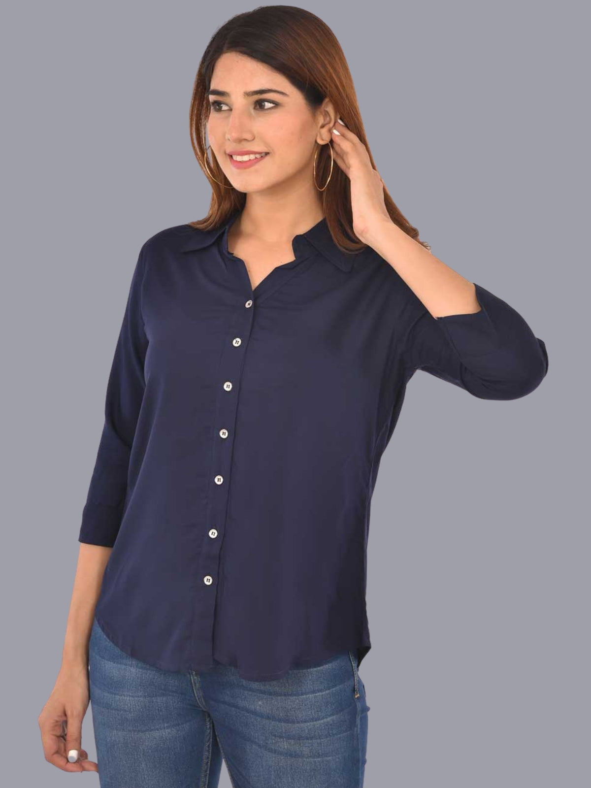 Womens Solid Dark Blue Regular Fit Spread Collar Rayon Shirt