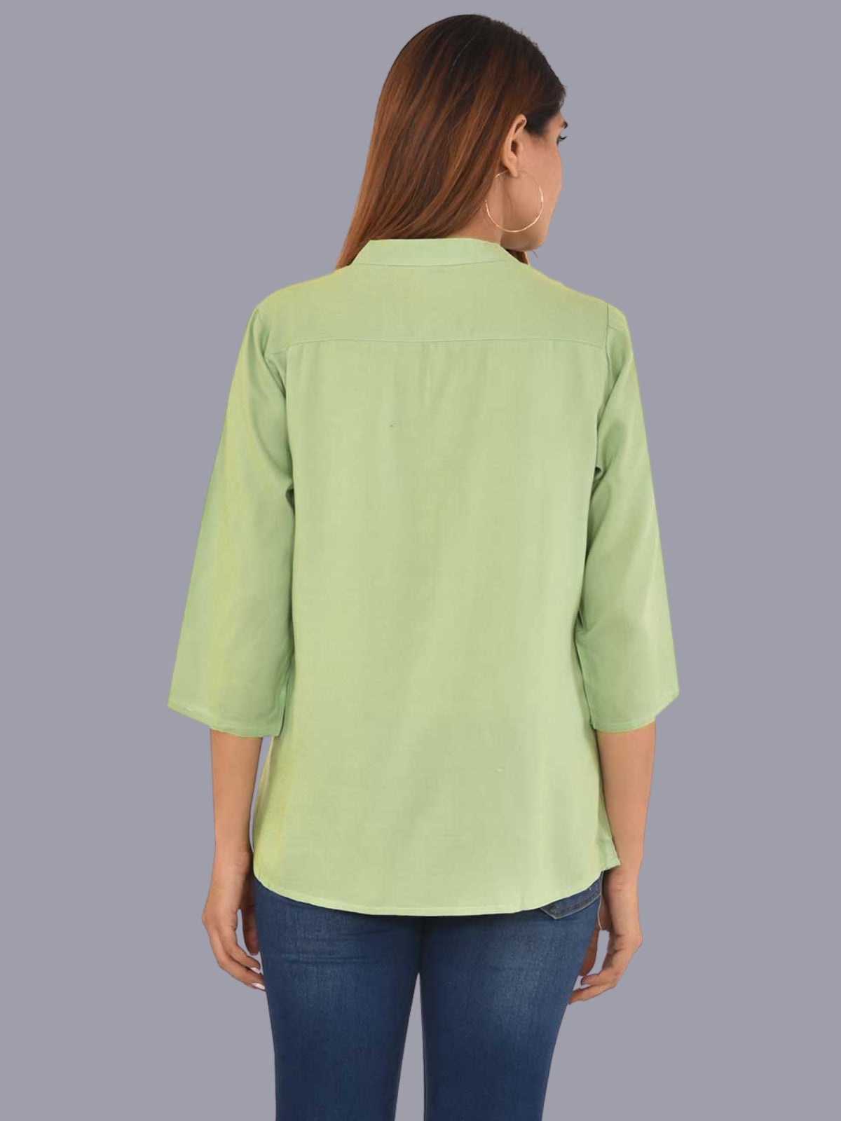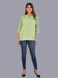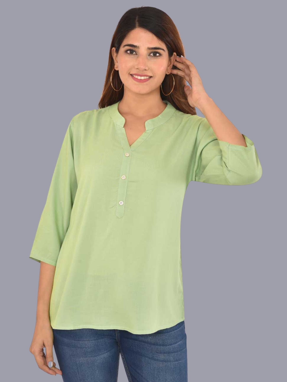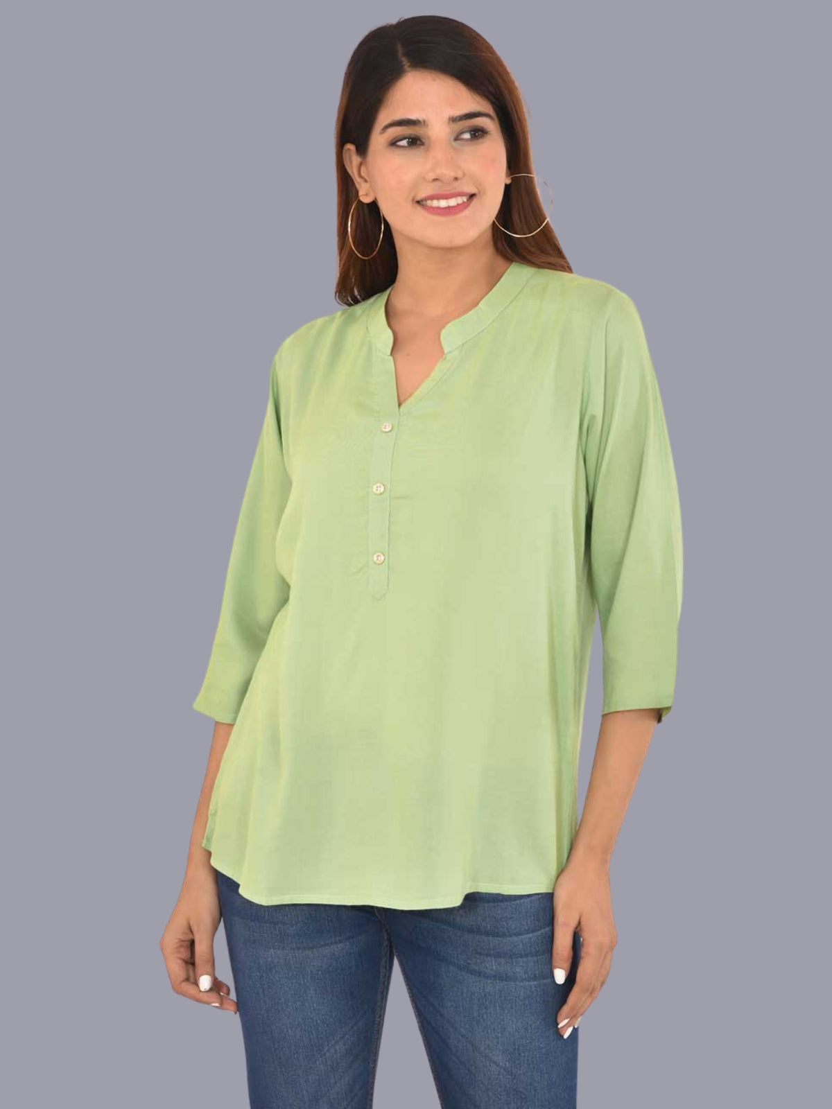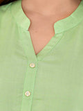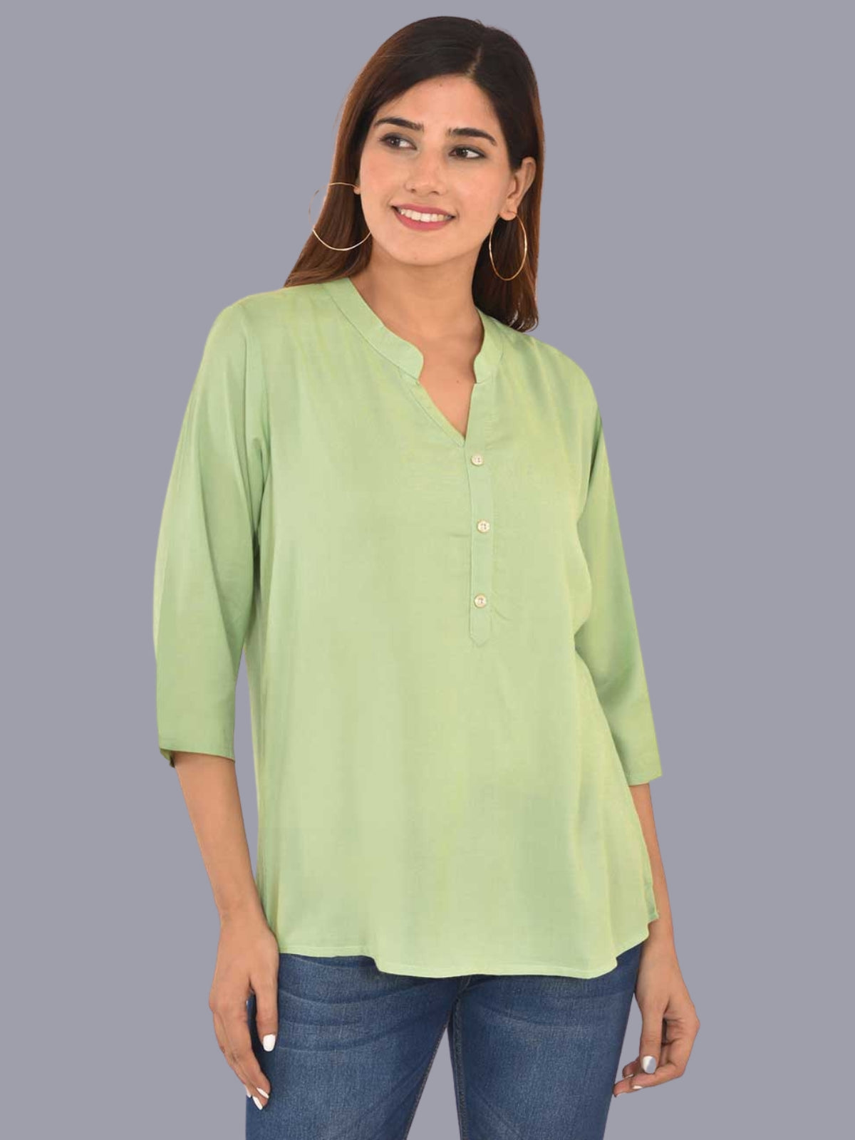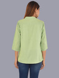 Womens Solid Light Green Chinese Collar Three Fourth Sleeve Rayon Tops