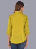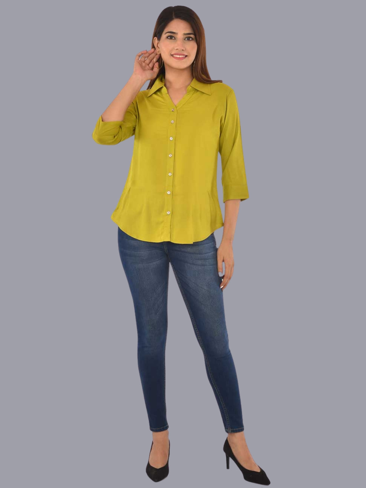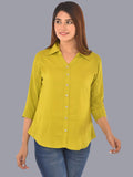 Womens Solid Mehndi Green Regular Fit Spread Collar Rayon Shirt