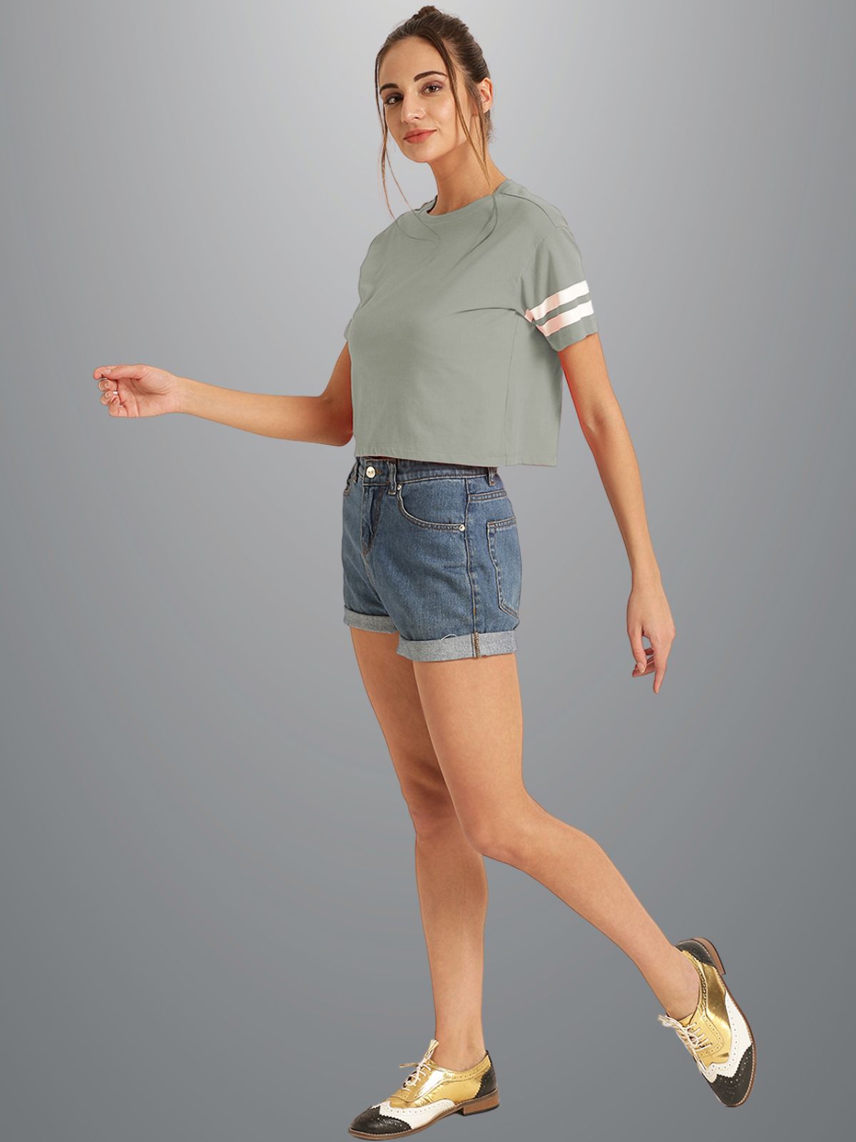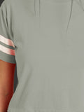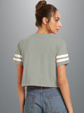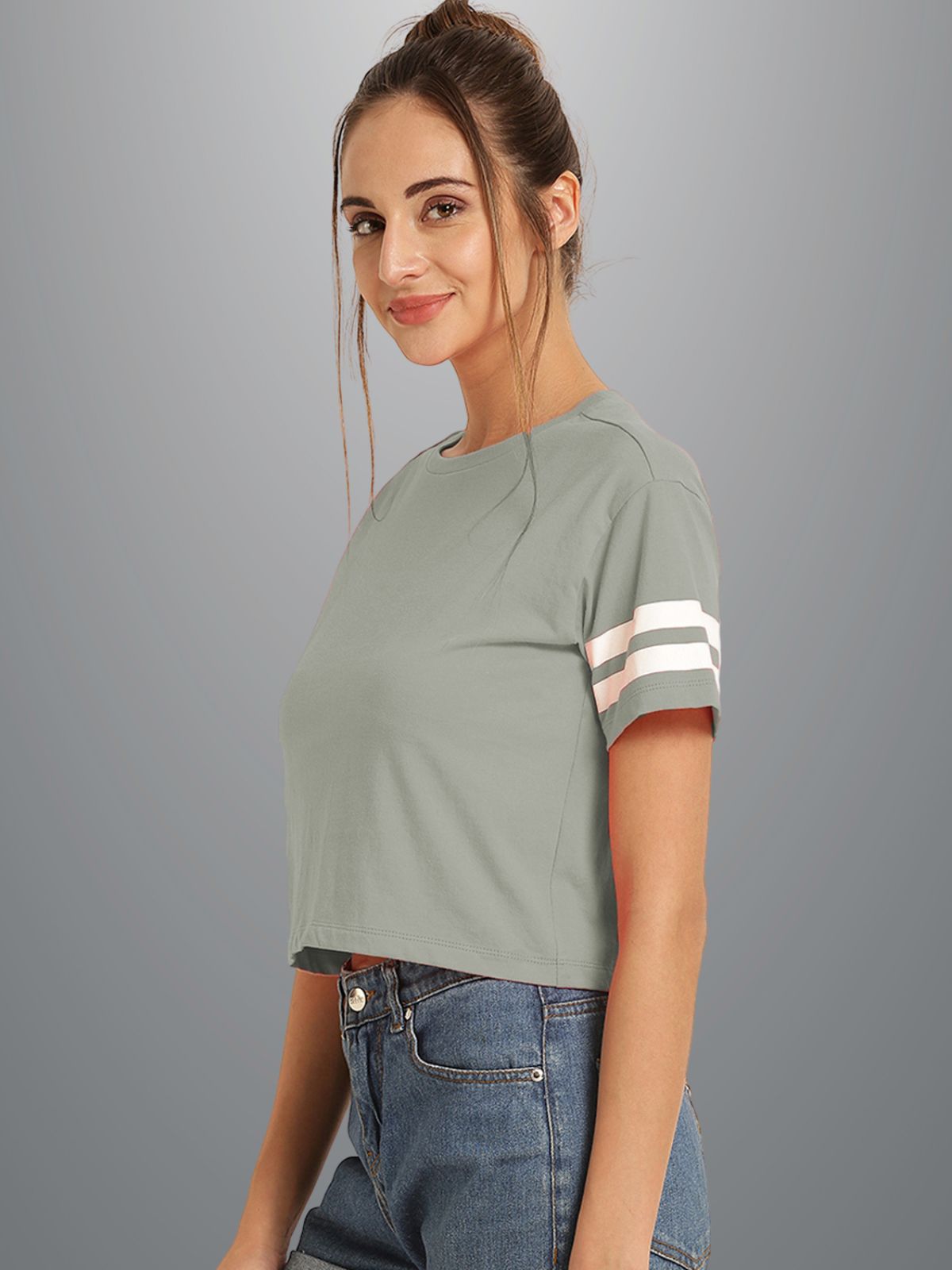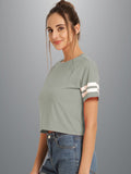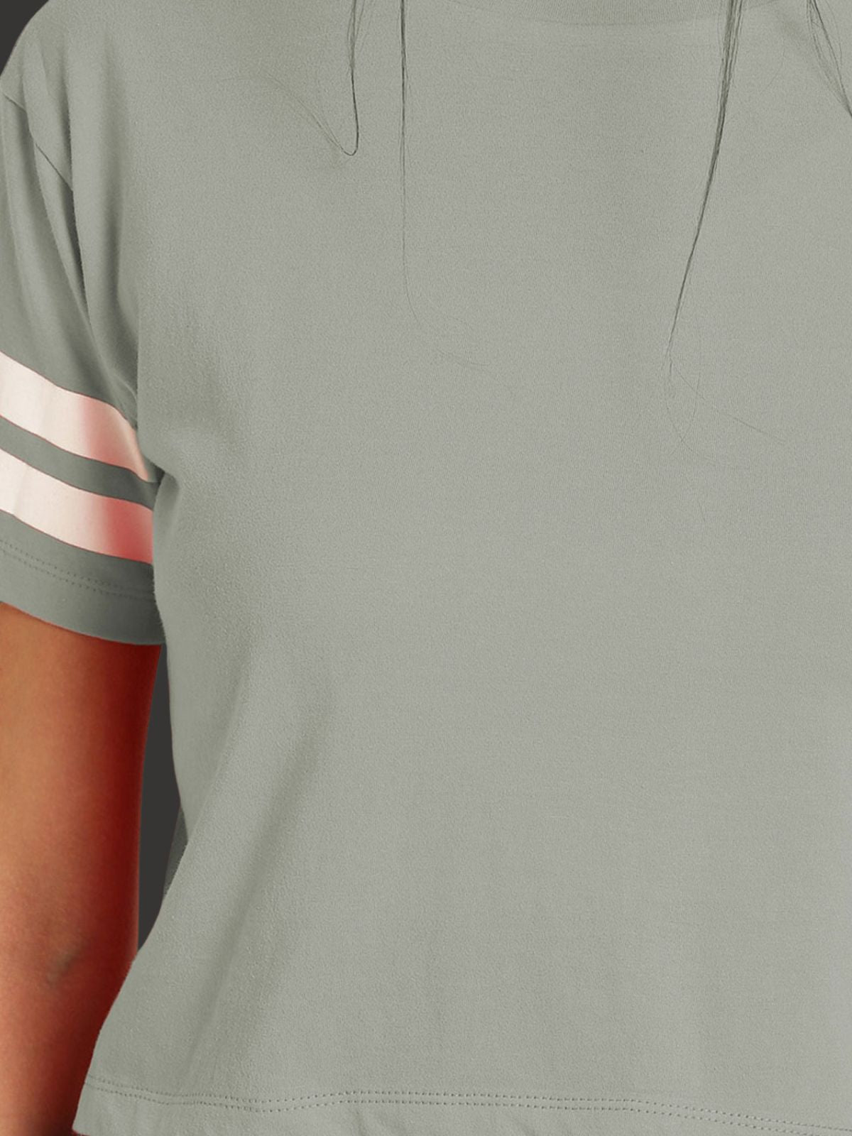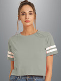 Womens Solid Melange Grey Cotton Crop Top With Designer White Stripe